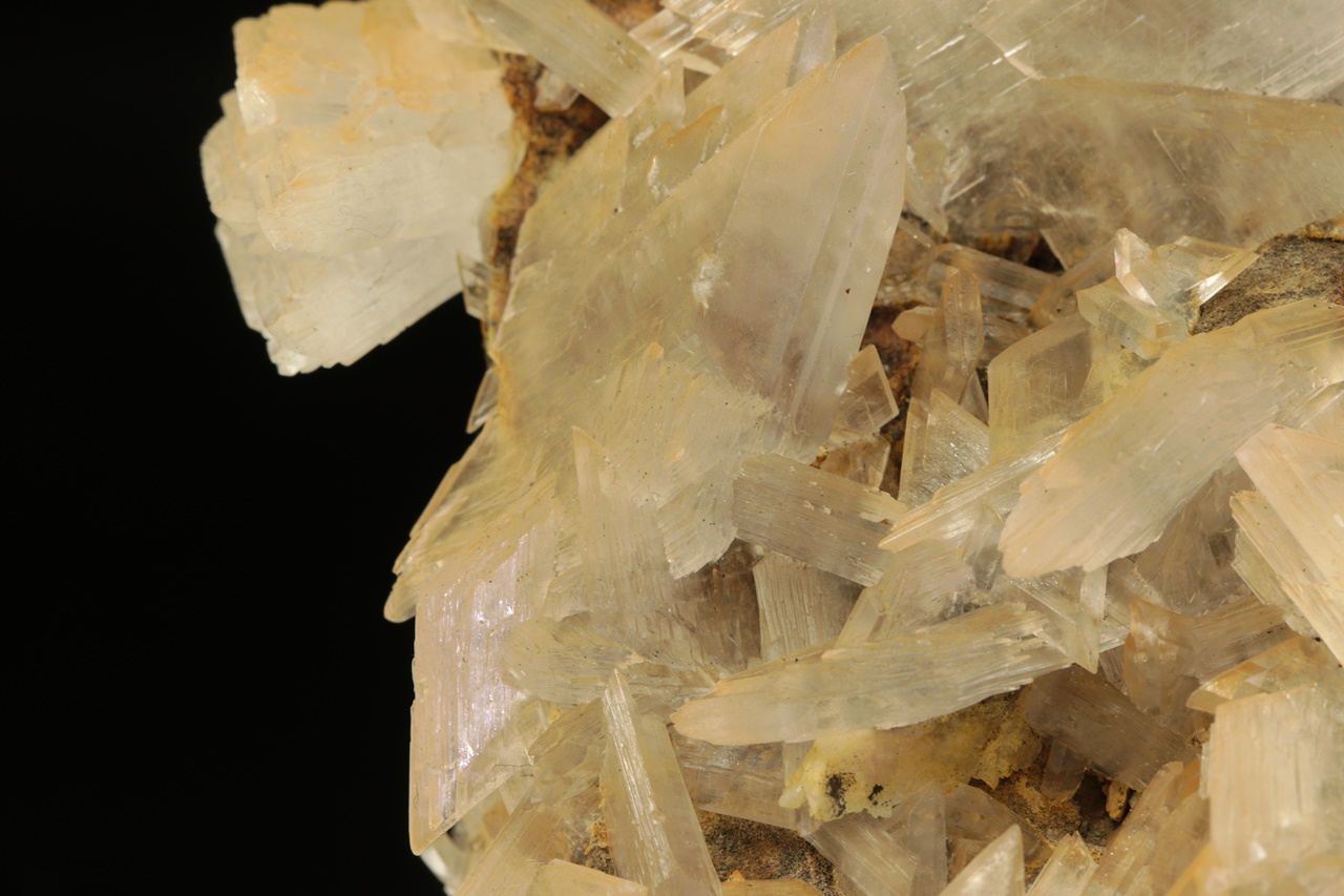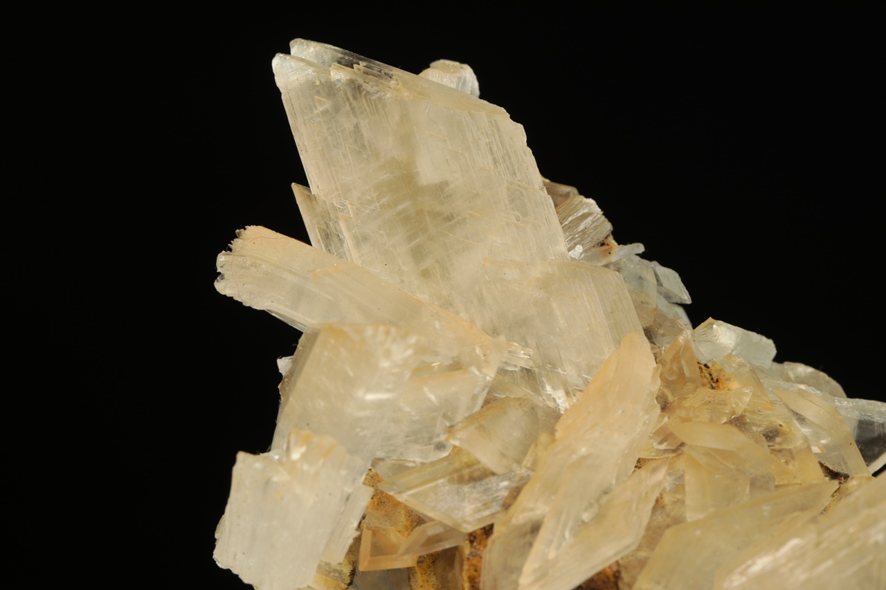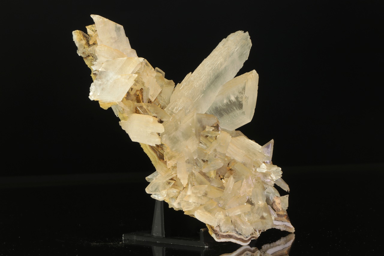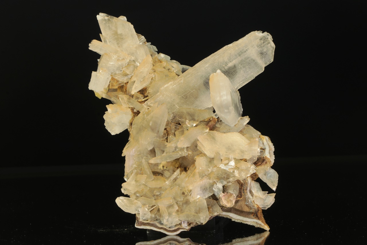 Ästhetische Probe von durchsichtigen, glänzenden Sádrovec-Kristallen aus einem bekannten rumänischen Fundort. Die Größe der größten Kristalle beträgt 8,5 und 5,5 cm.