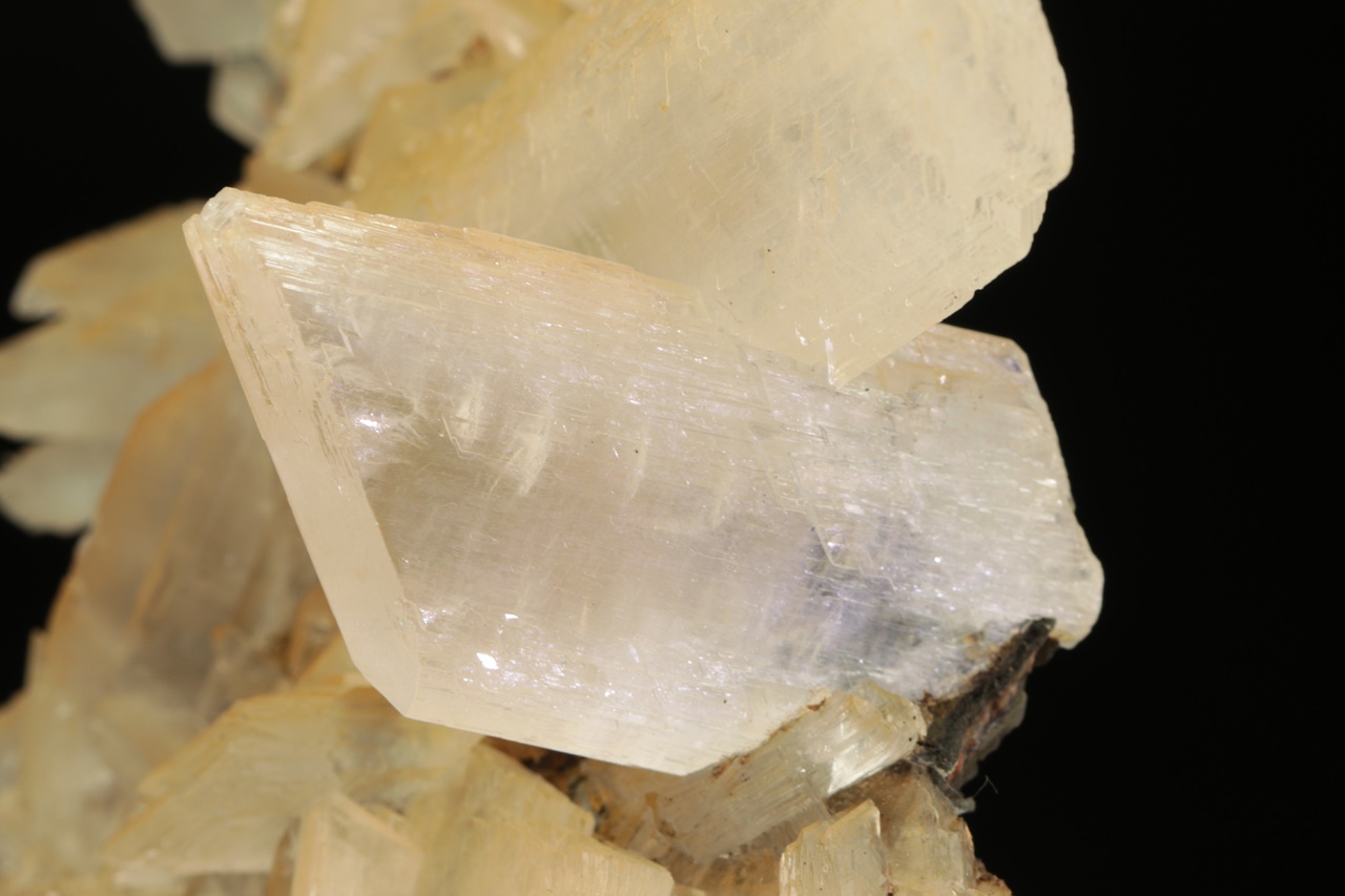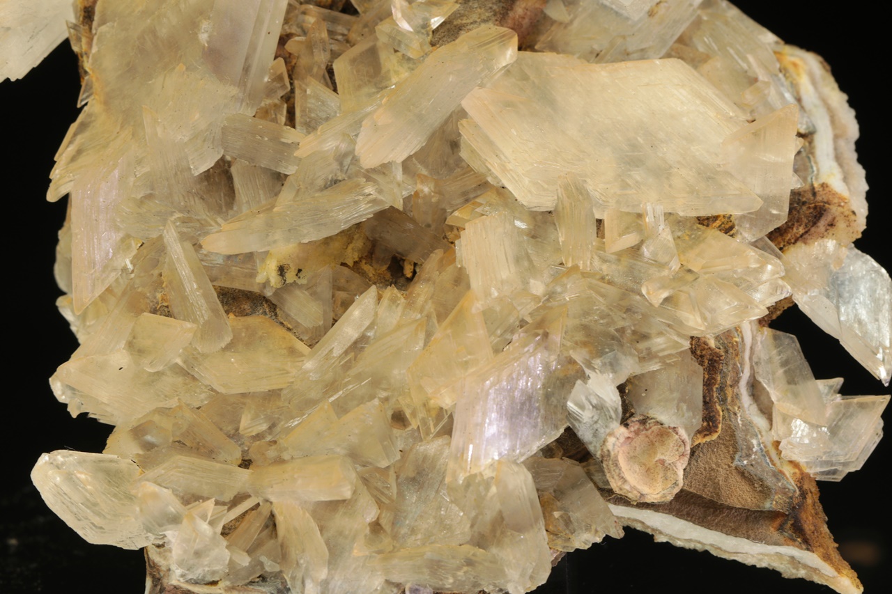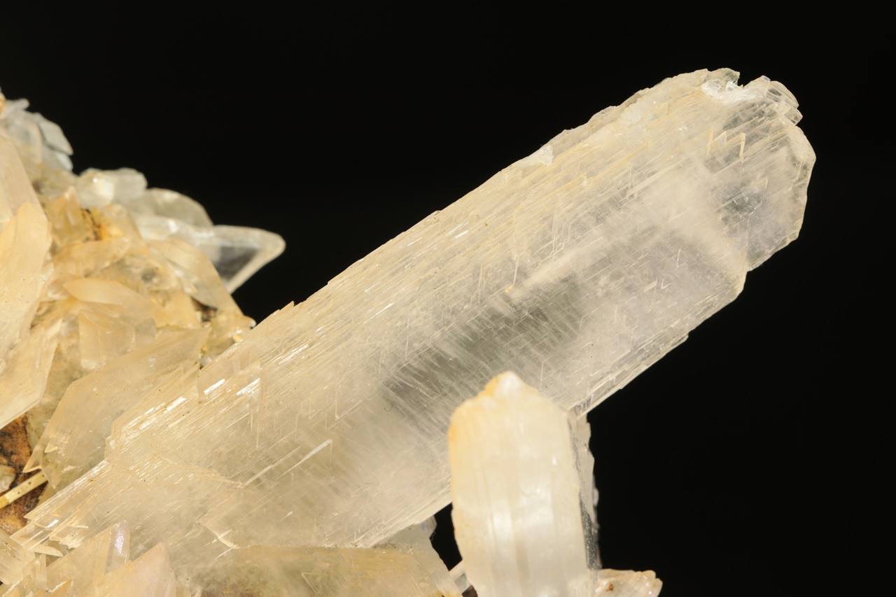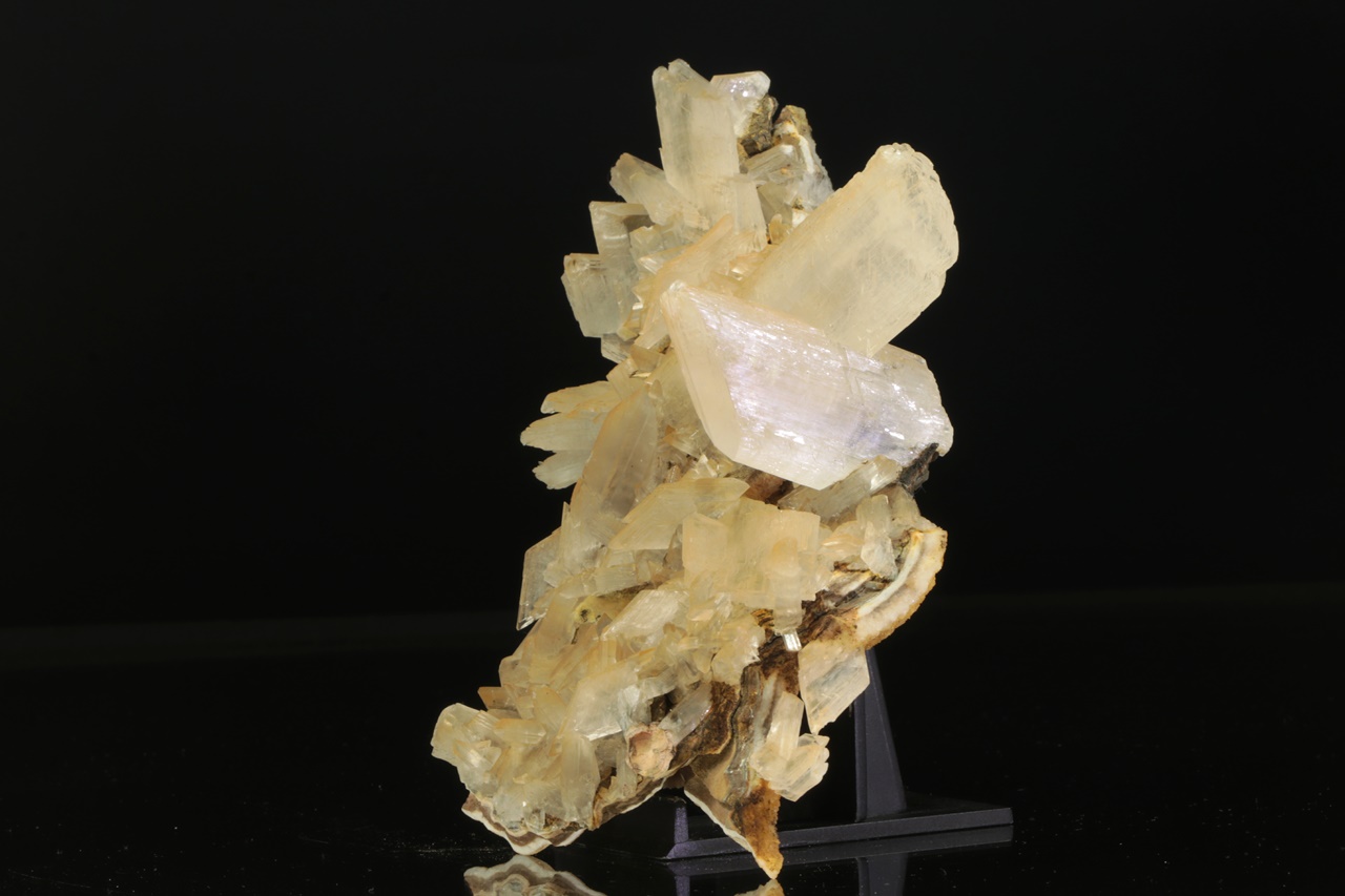 Ästhetische Probe von durchsichtigen, glänzenden Sádrovec-Kristallen aus einem bekannten rumänischen Fundort. Die Größe der größten Kristalle beträgt 8,5 und 5,5 cm.