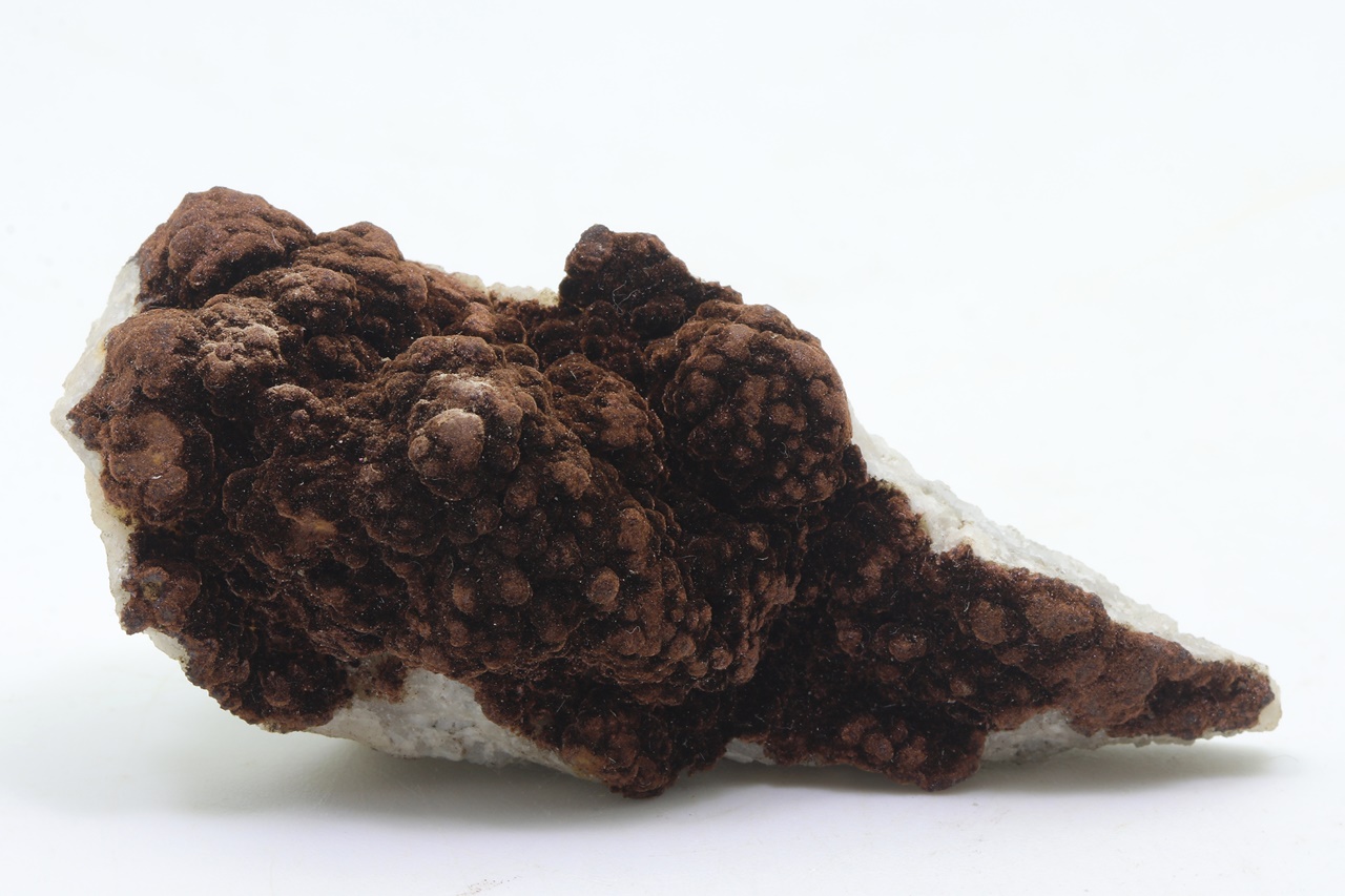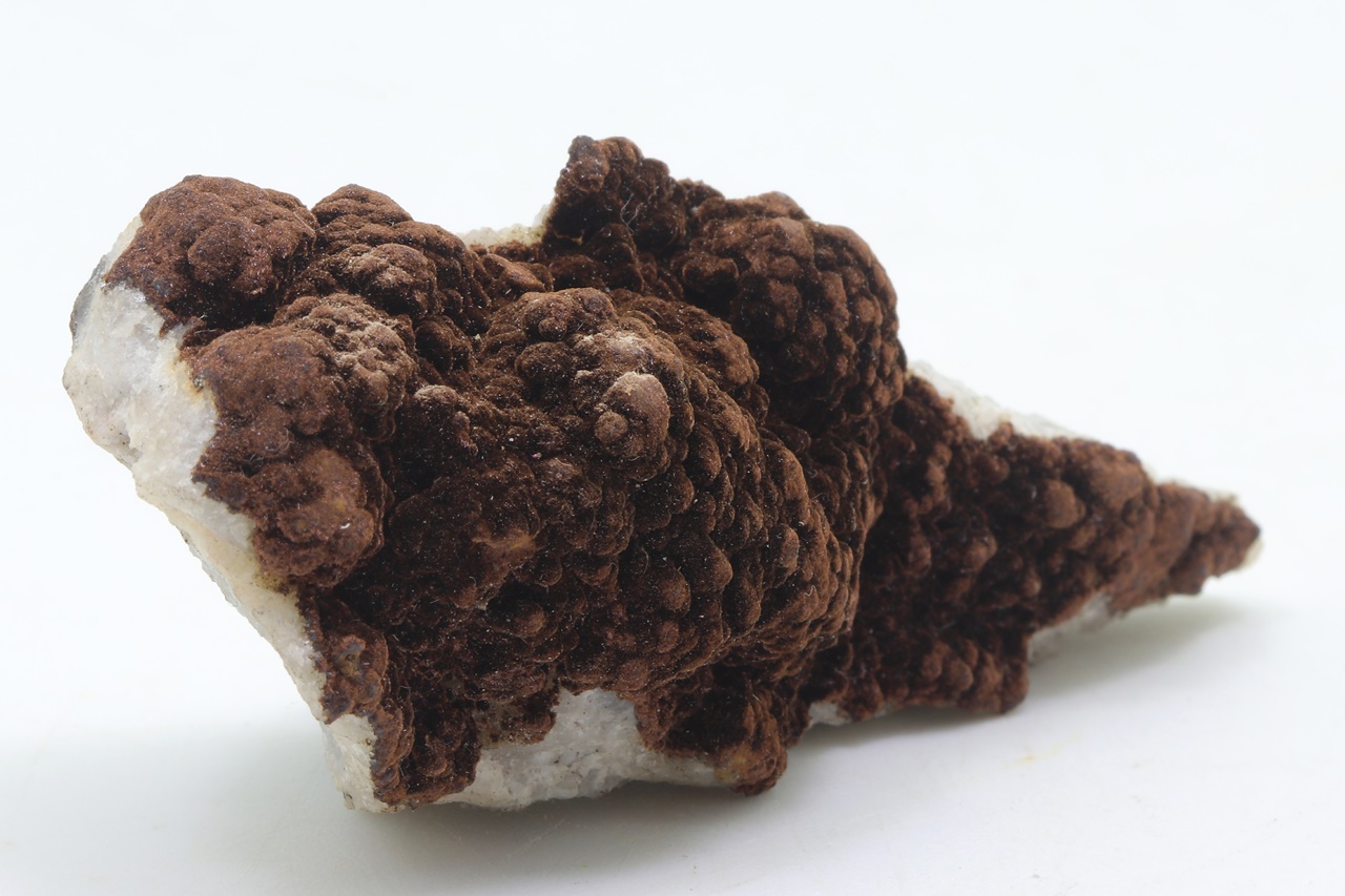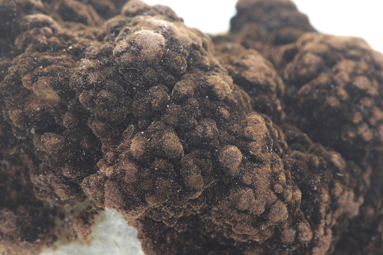 Druse Calcit, überzogen mit kleinen Goethit-Nadeln, die aufgrund ihres charakteristischen Glanzes als „Samt“ bezeichnet werden.