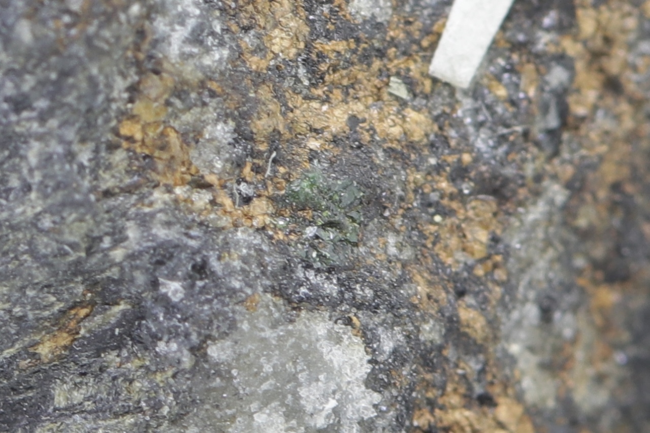 Grünes Korn des seltenen vanadového Granats, circa 1 mm groß 【4:3†cz_to_de.json】.