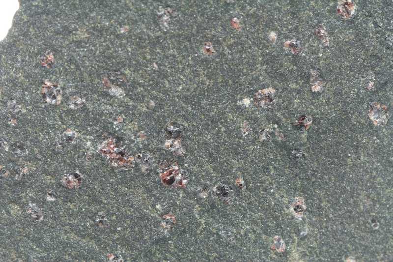 Pyrop – tschechischer Granat der Größe 2-3 mm. Die Probe stammt aus einem Bohrkern aus den 70er Jahren.