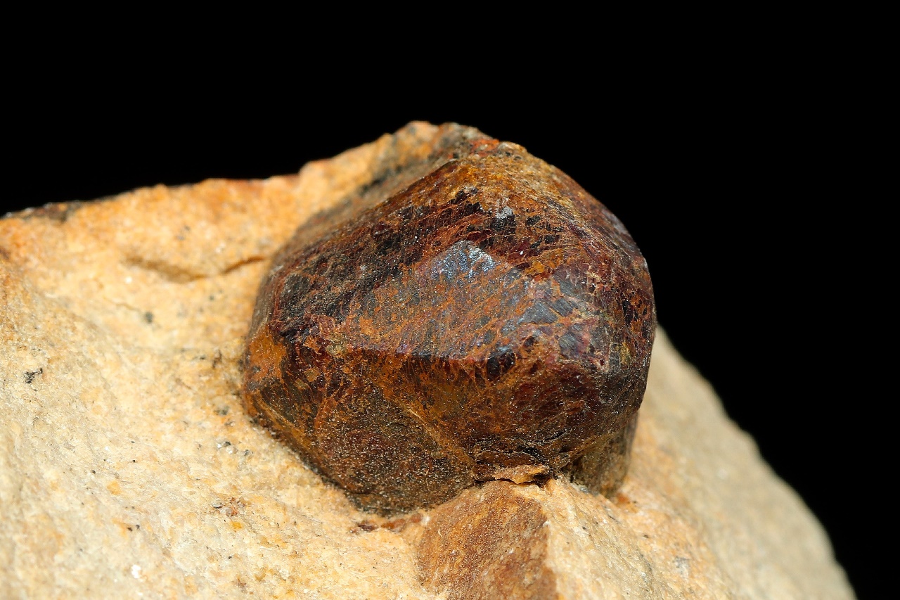 Große Auswüchse von eisenreichem Granat Almandin in feinkörnigem Gestein. Der Kristall ist 2,5 cm groß.