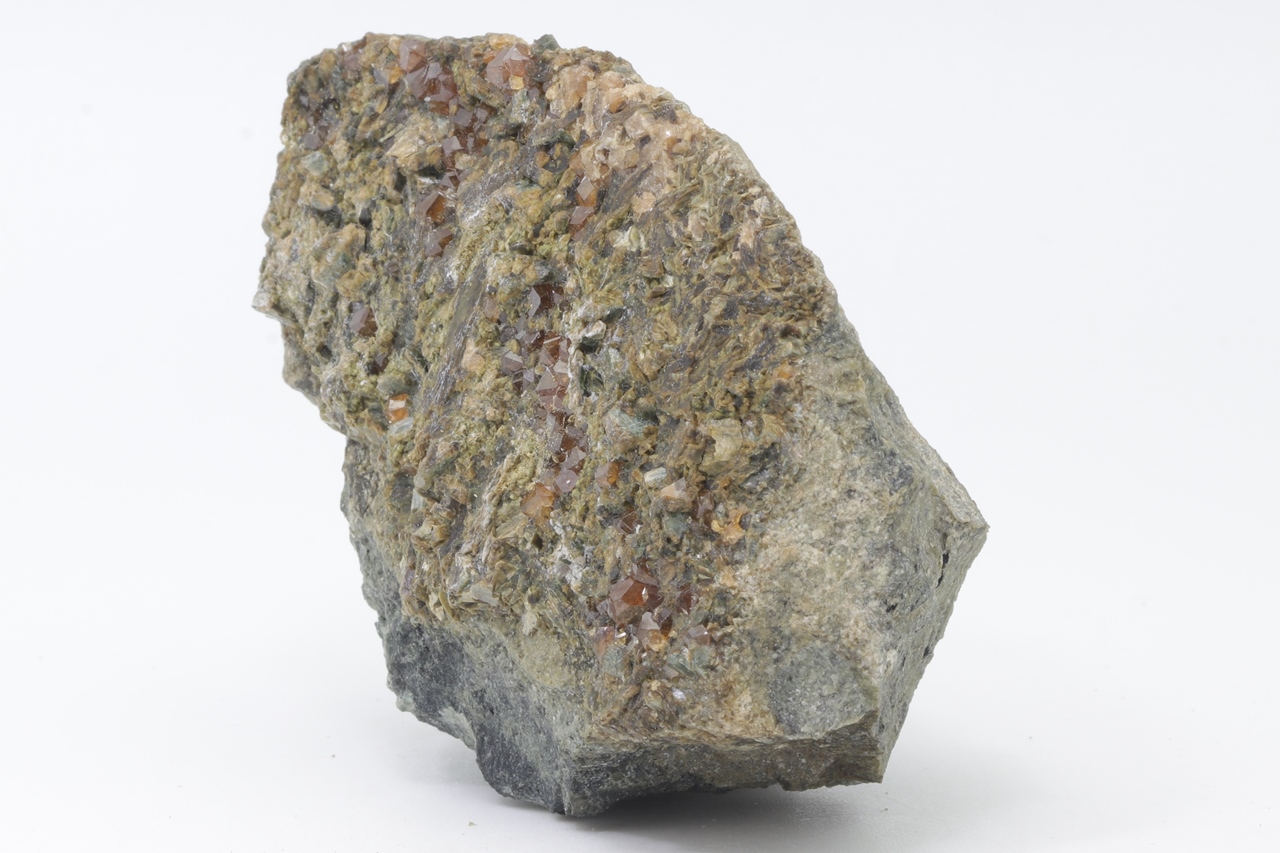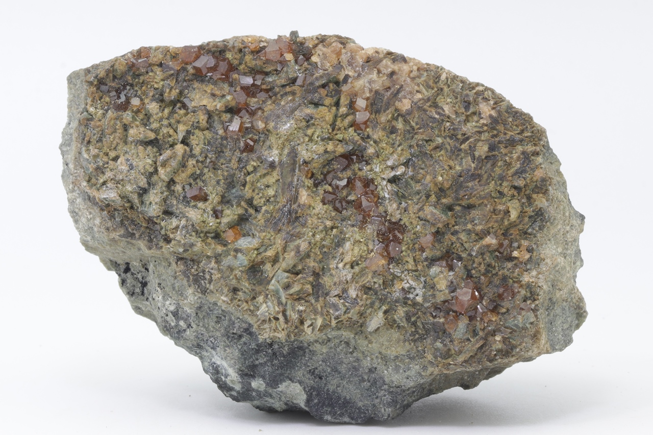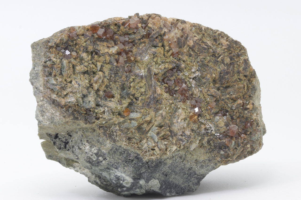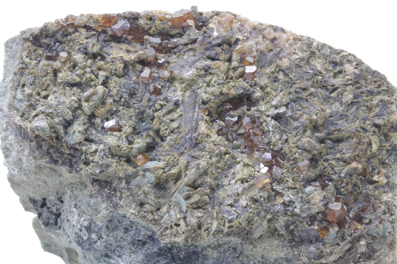 Glänzende Kristalle des dunkel orangefarbenen Grossulars von Edelsteinqualität bis zu 5 mm Größe.