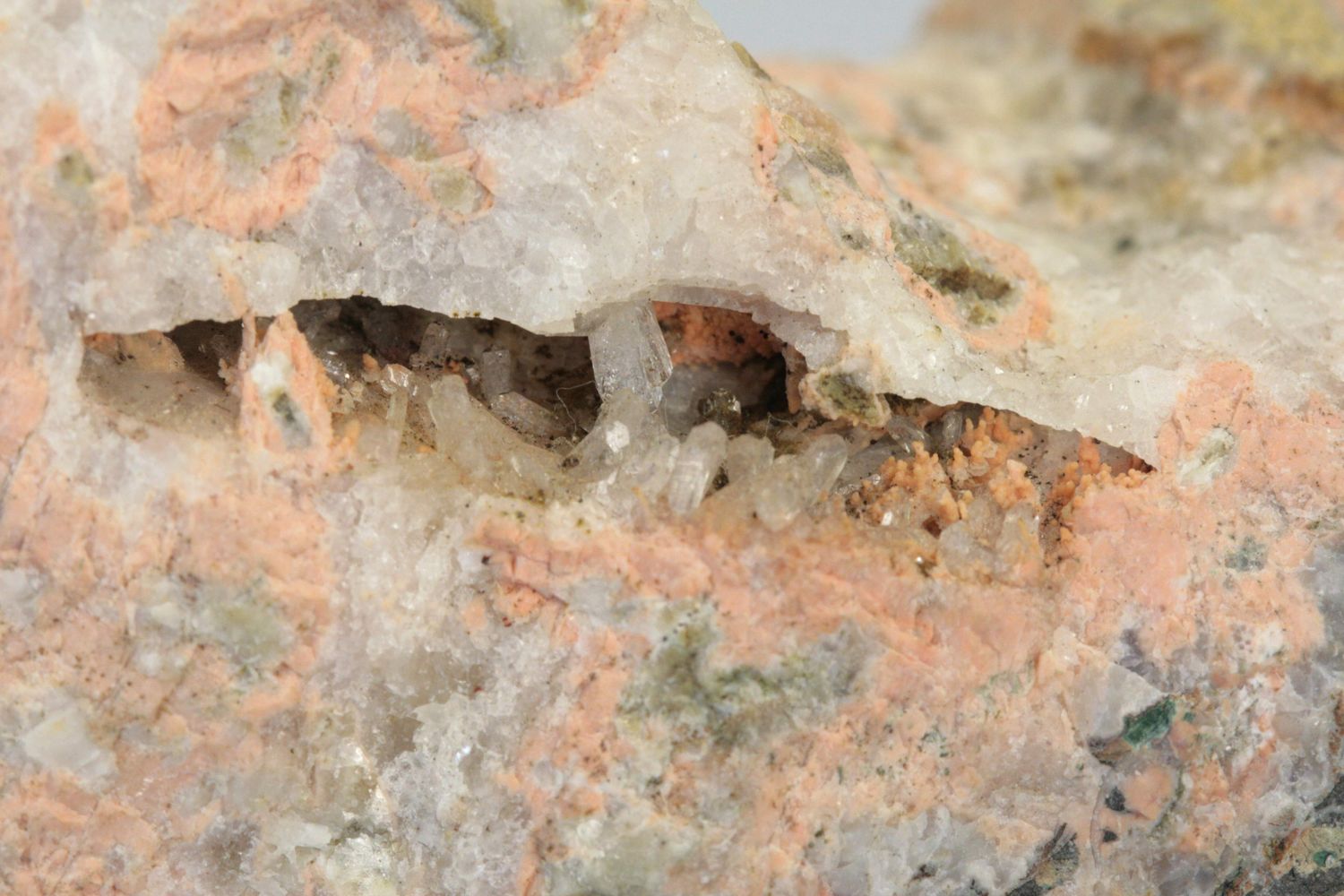 Attraktive Probe von bariumreichen Zeolith-Kristallen Harmotom in den Hohlräumen des Muttergesteins .