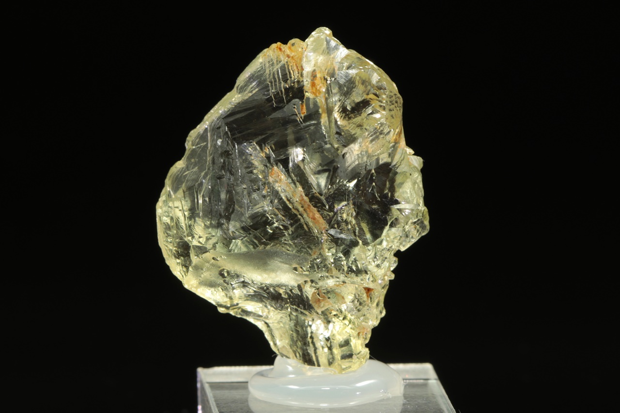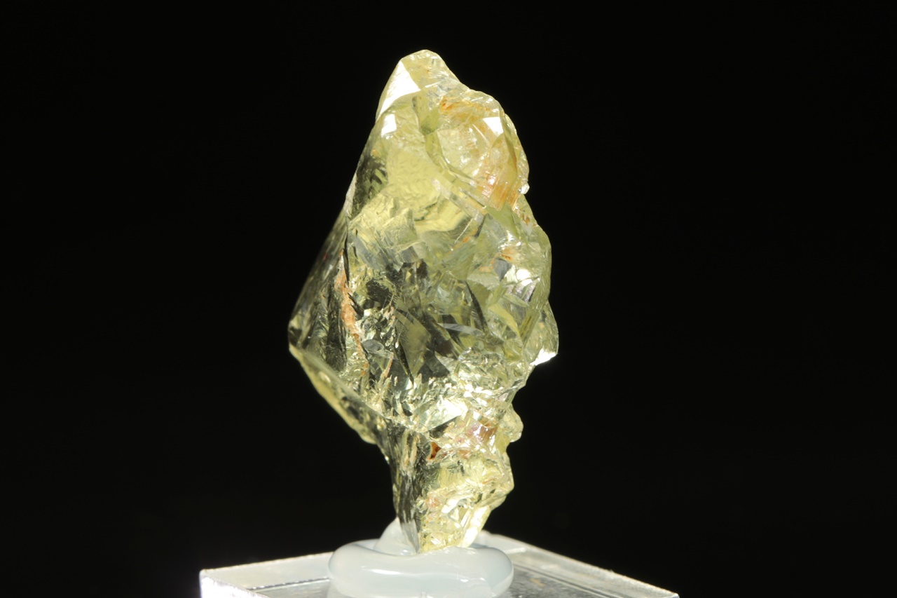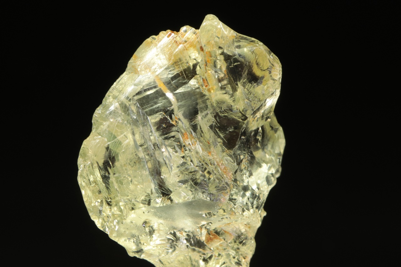Kristall eines sehr reinen, intensiv gelben Heliodor-Edelsteins. Die Probe ist intensiv natürlich geätzt, was ihr eine sehr interessante Skulptur verleiht.
