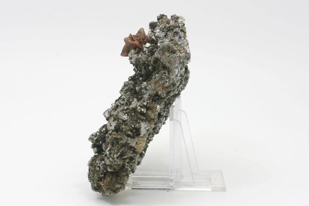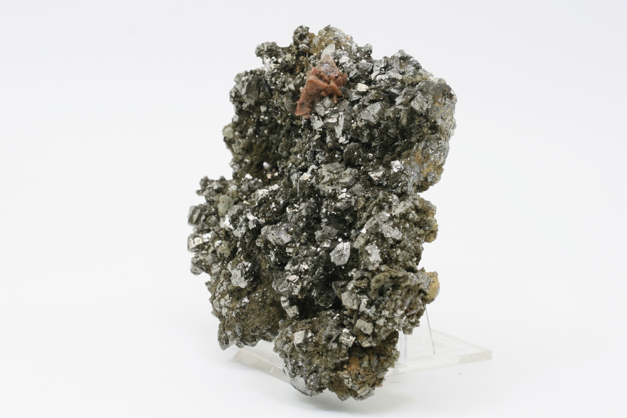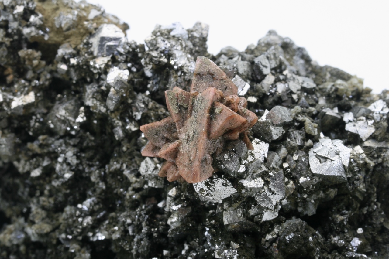 Wunderschöne, ungewöhnlich große Durchwachsen von gut begrenzten, tetraedrischen Helvin-Kristallen, aufgewachsen auf einer Druse von metallisch glänzenden Arsenopyrit-Kristallen. Der größte Helvin-Kristall ist 15 mm groß. Der größte Arsenopyrit-Kristall ist 8 mm groß .