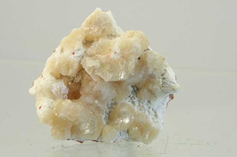 Ästhetischer Heulandit aus der indischen Region Poona. Probe von perlmuttglänzenden kristallinen Aggregaten des orangen Heulandits.