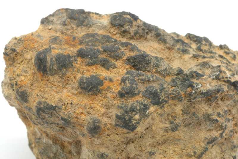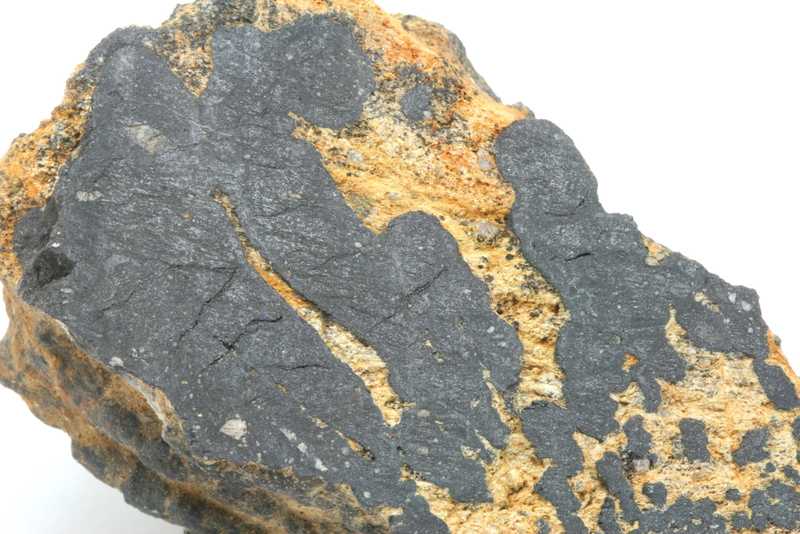 Interessantes Exemplar von Mangandioxid und Bariumhollandit aus dem Gebiet Lažánky bei Třebíč. Das Exemplar zeigt Aggregatschnitte des Hollandits auf der Unterseite.