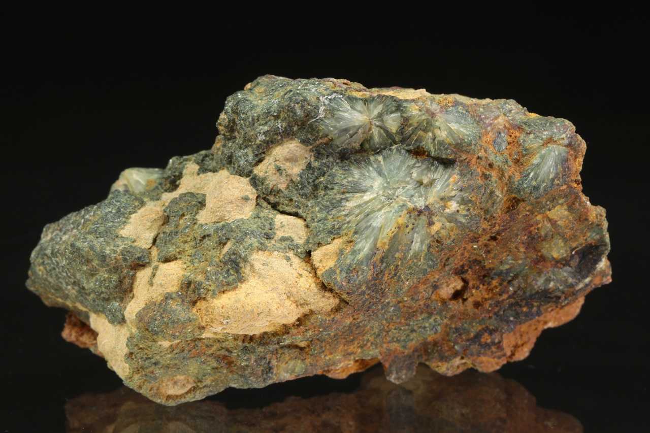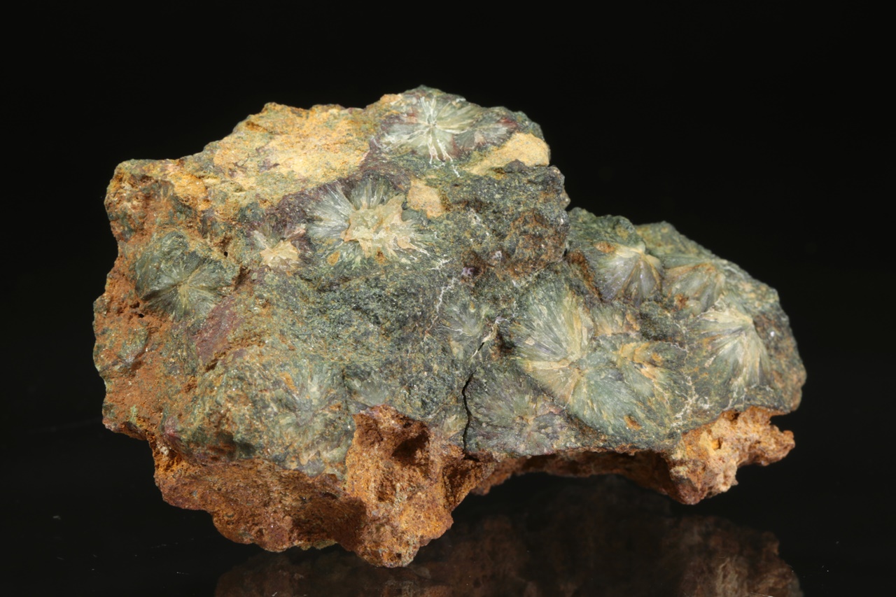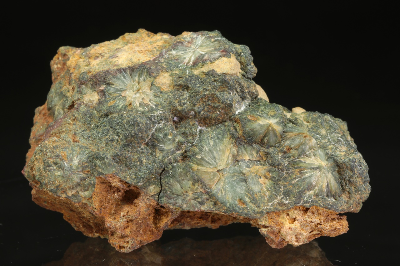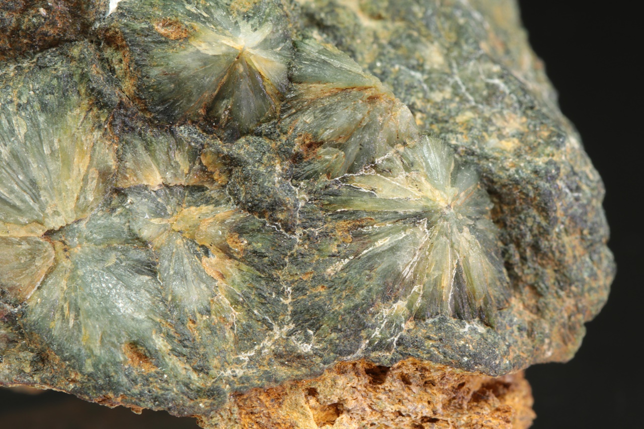 Radiální agregáty zeleného křemene známé jako „hvězdový křemen“.