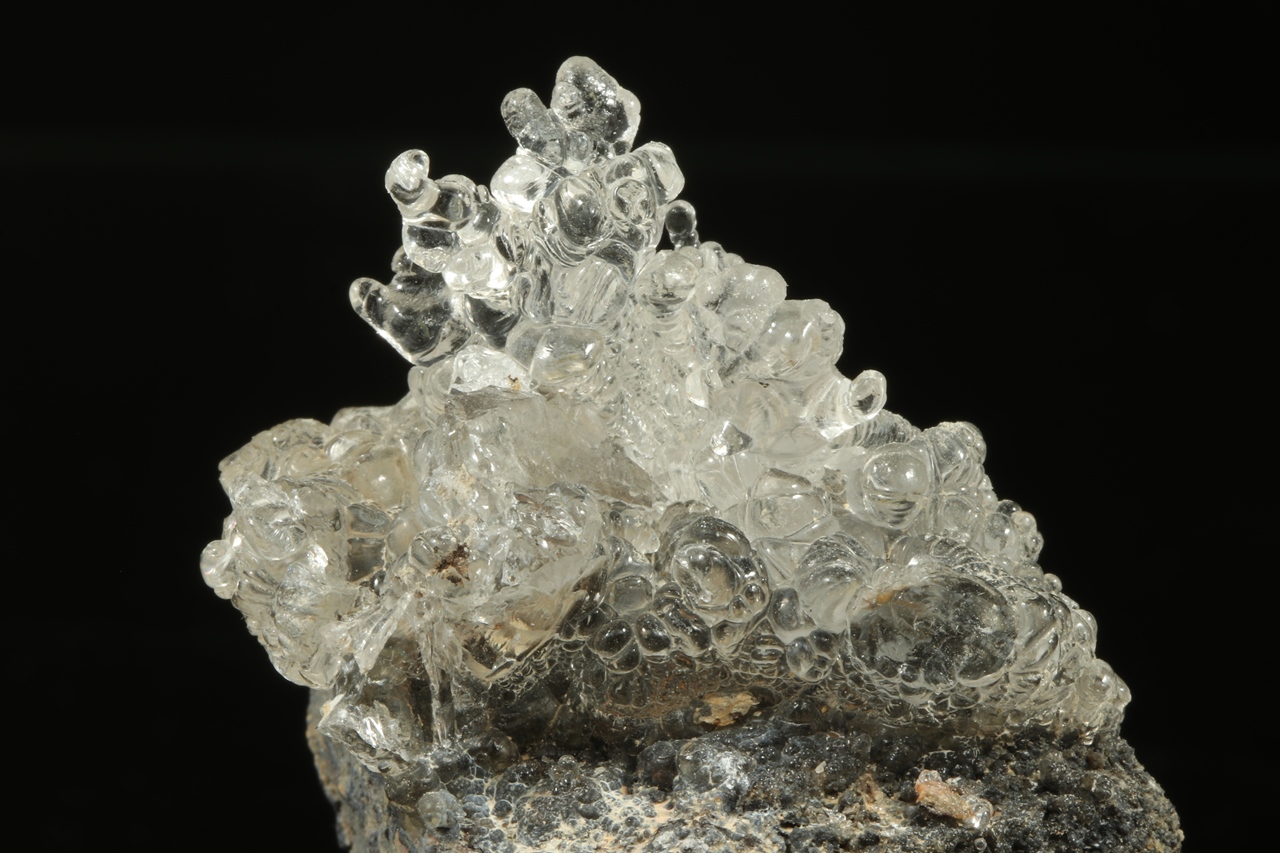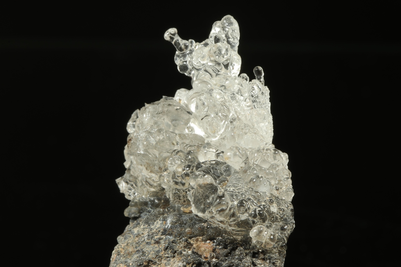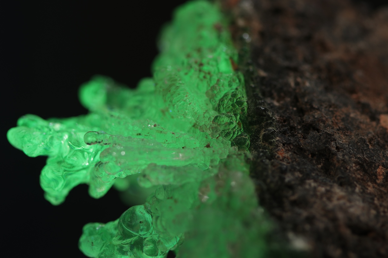 Schöne Hyalit-Krone aus Ungarn, die unter UV-Licht intensiv grün leuchtet.