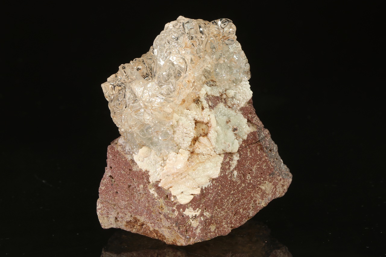 Wunderschöne, völlig unbeschädigte „Krone“ aus klarem Opal – Hylait mit weißen Staffelit-Überzügen. Die Maße der Krone betragen 3,5 × 2 × 2 cm.