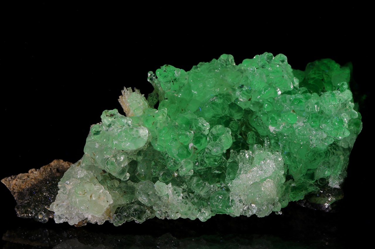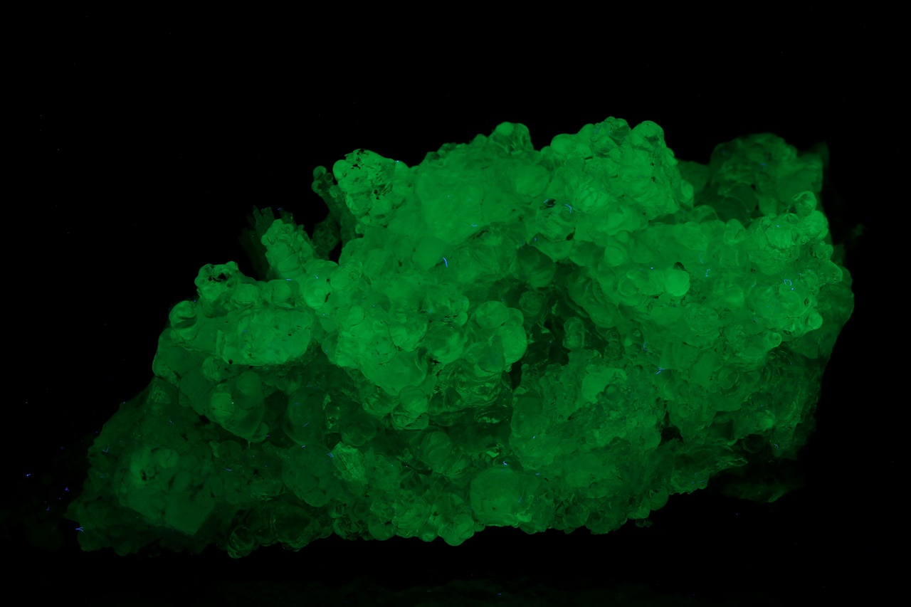 Sehr hochwertiges Beispiel von sehr verzweigt und dicht gewachsenem klarem Opal. Unter kurzwelligen UV-Strahlung leuchtet der Opal intensiv grün.