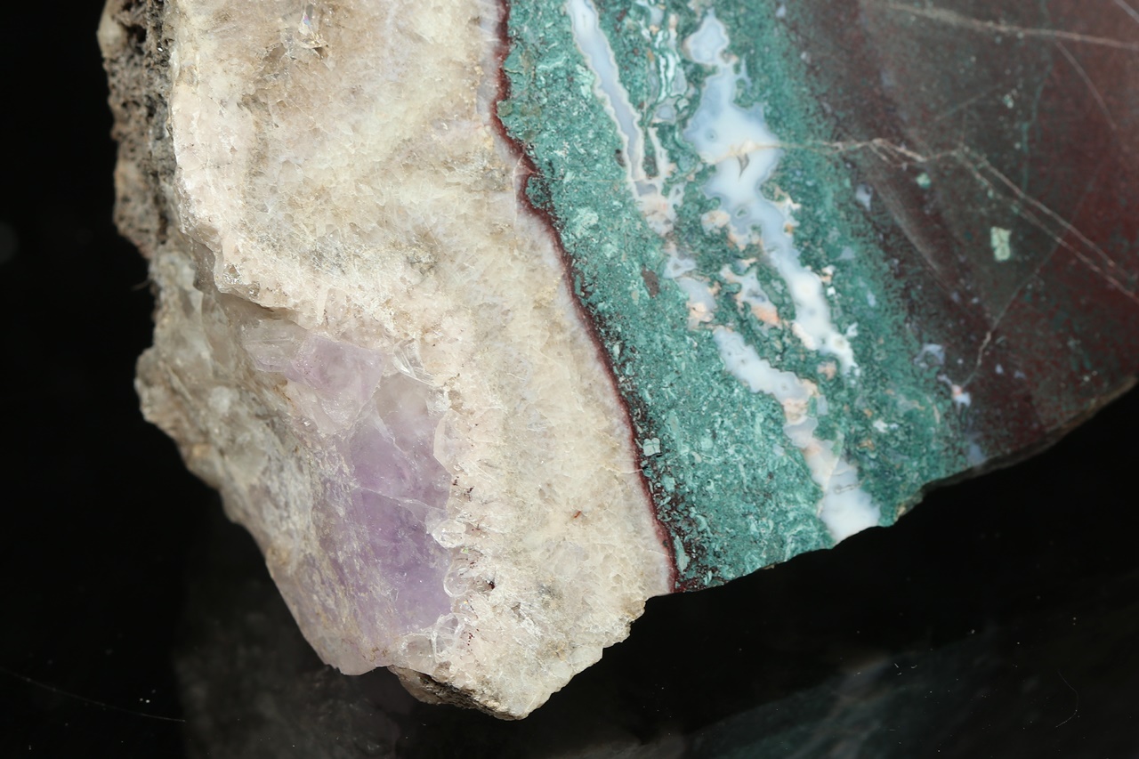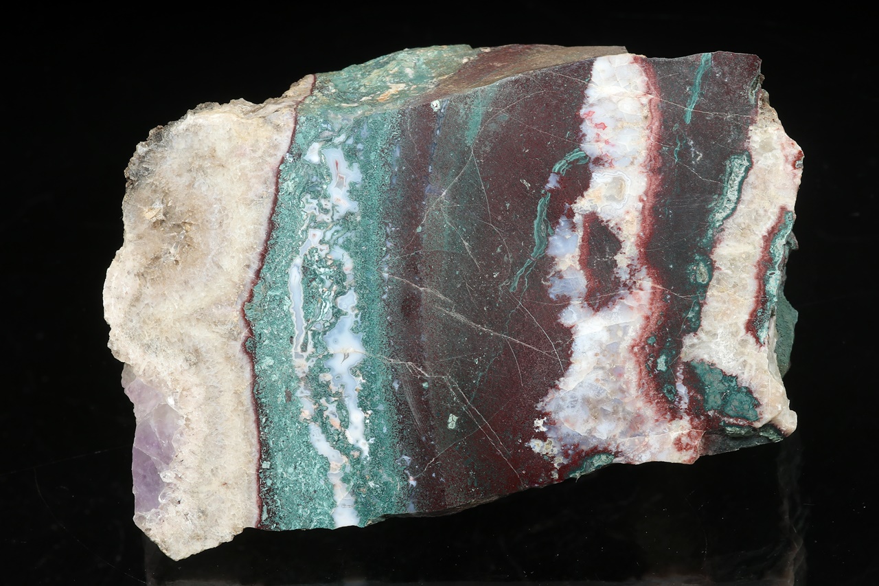Polierter Muster des gestreiften Jaspis mit Quarz und Amethyst.