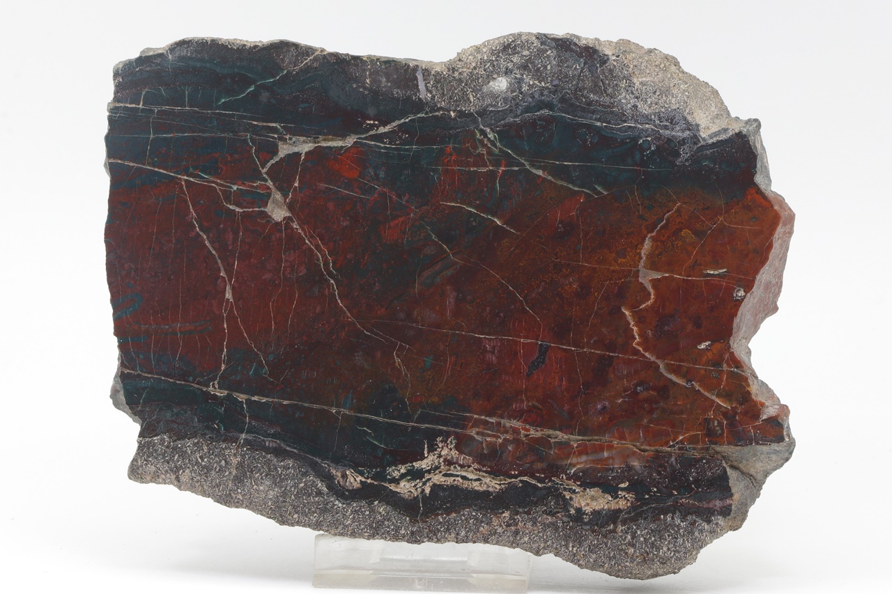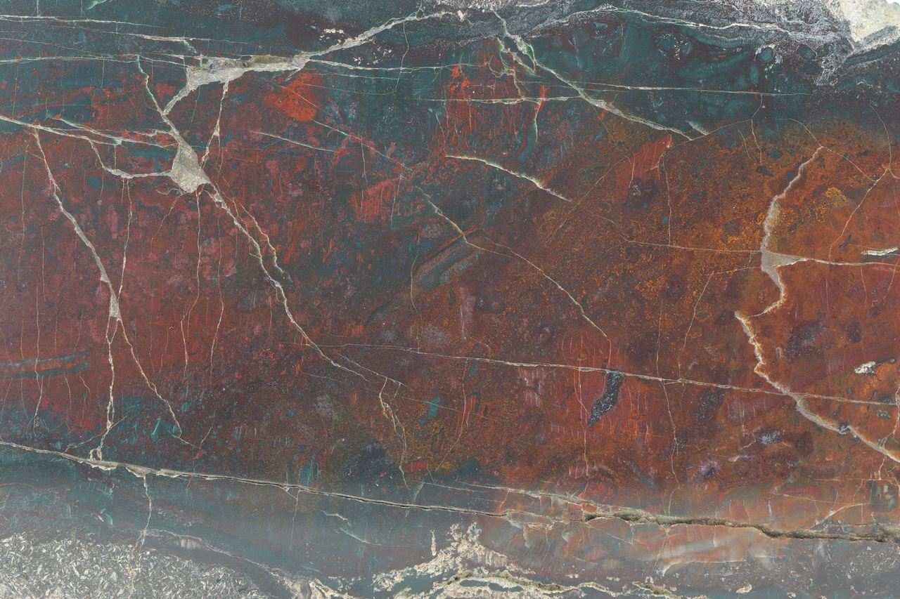 Beidseitig poliertes Muster einer rot-grünen Jaspisader.