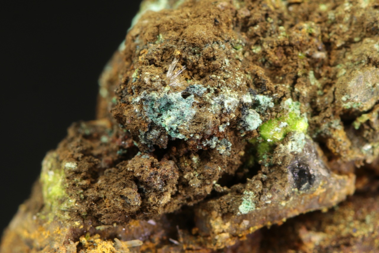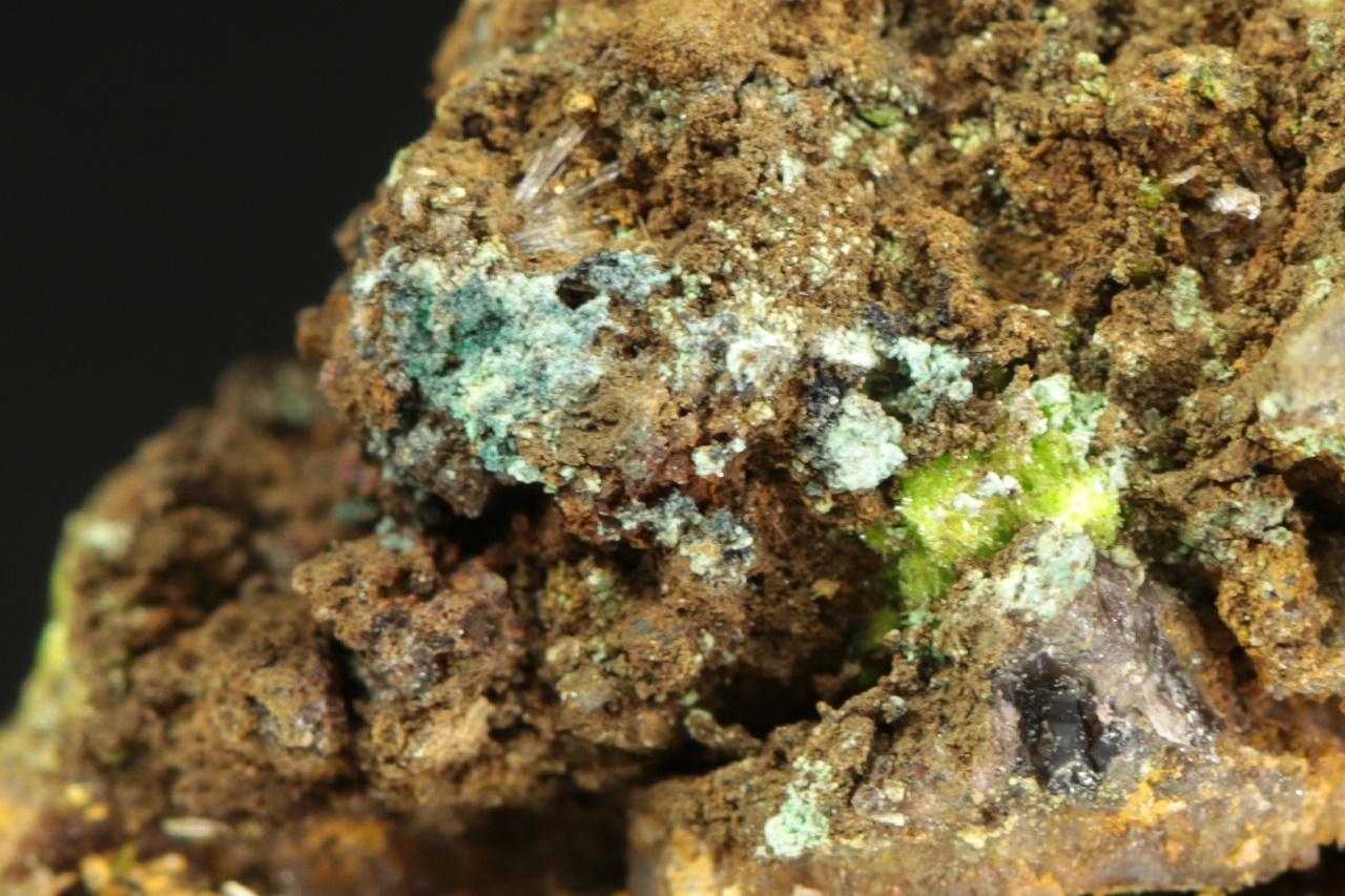Apfelgrüne Aggregate von Uranylsulfat und Kupfer aus der Typlokalität.