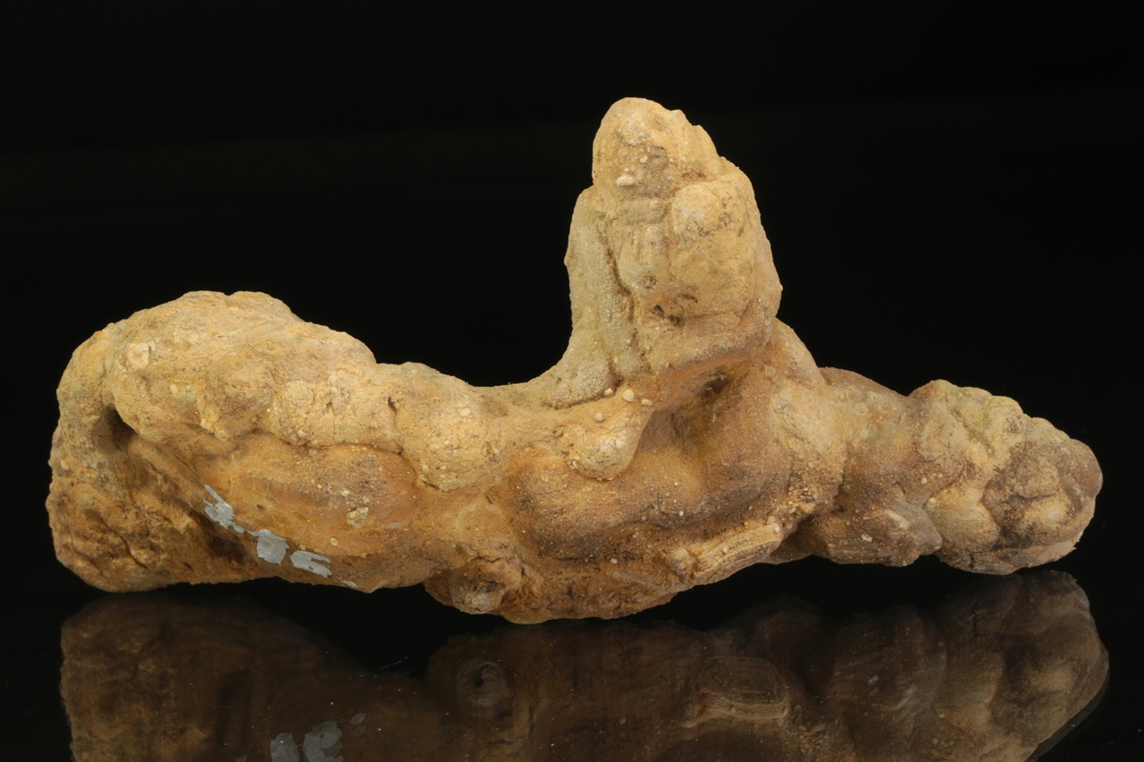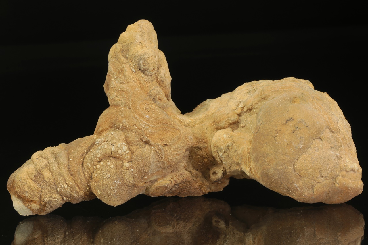 Verlängerte Kalcit-Konkretion, gefunden im Jahr 1996 auf den Halden einer ehemaligen Ziegelei.