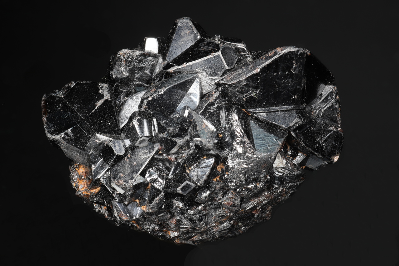 Estetická drúza lesklých dvojčatných krystalů kasiteritu do velikosti až 21 mm. Historický vzorek pochází z Horního Slavkova.