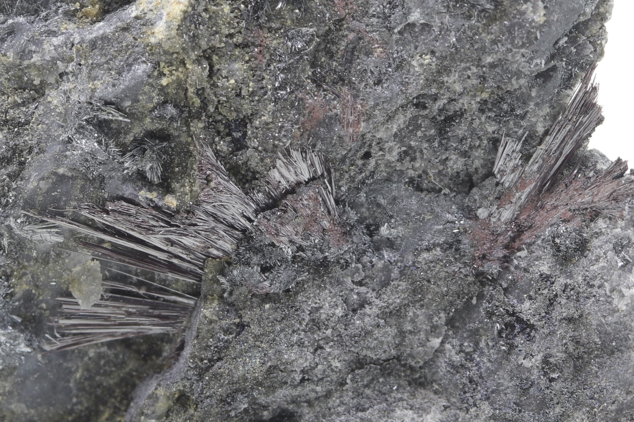 Kermezit bildet kirschrote nadelige Kristalle, die auch oft radiale Aggregate erstellen. Die Kristalle von Kermezit erreichen eine Größe bis zu 1 cm. Es handelt sich um ein schönes Beispiel dieses Sulfids aus der typischen Lokalität Pezinekk. Die Probe stammt aus dem Jahr 1985.