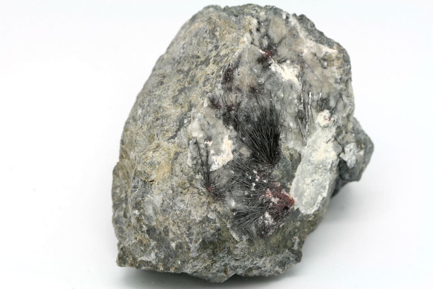 Stufe metallisch glänzender strahlenförmiger Kermeit-Kristalle .