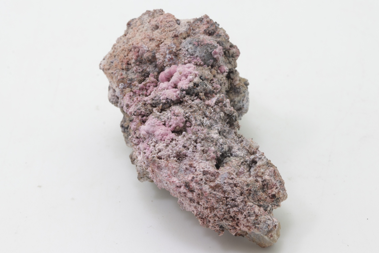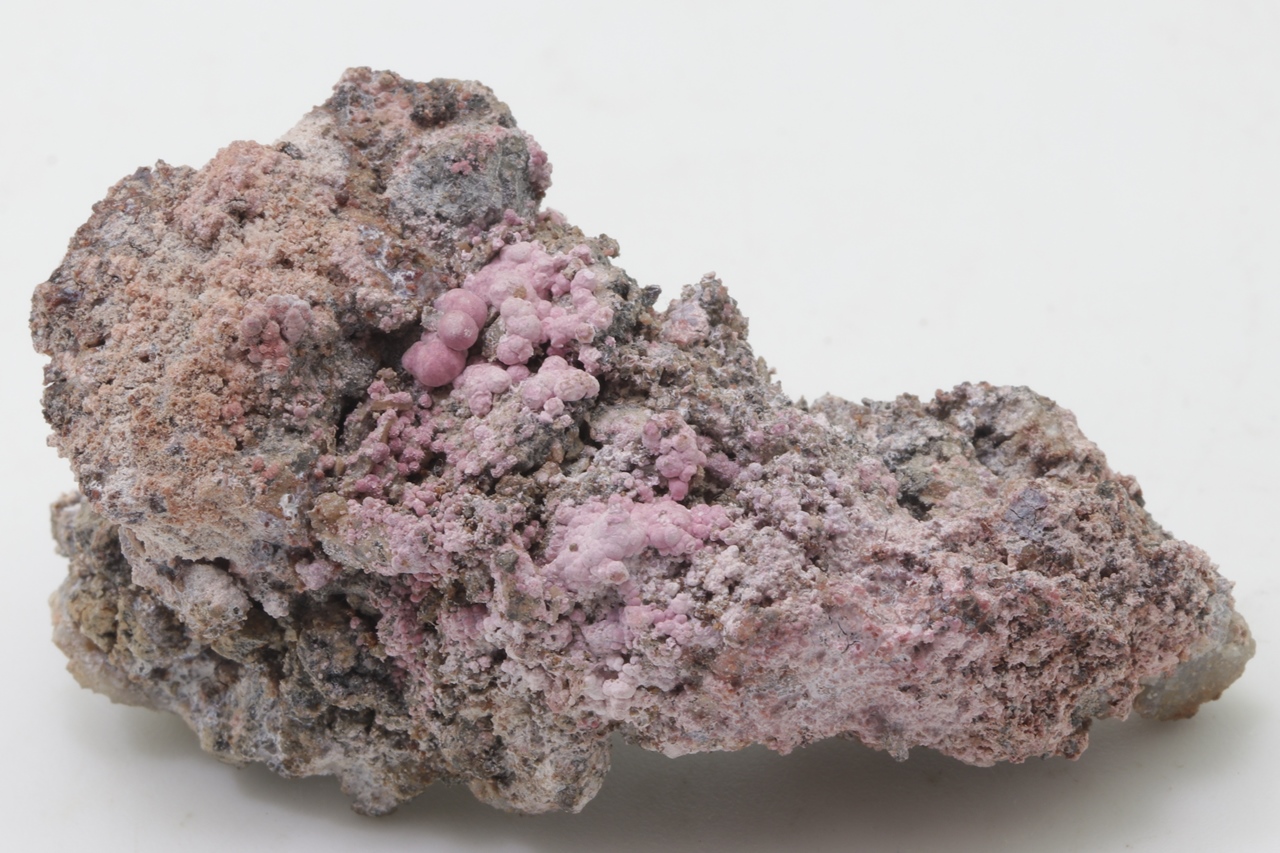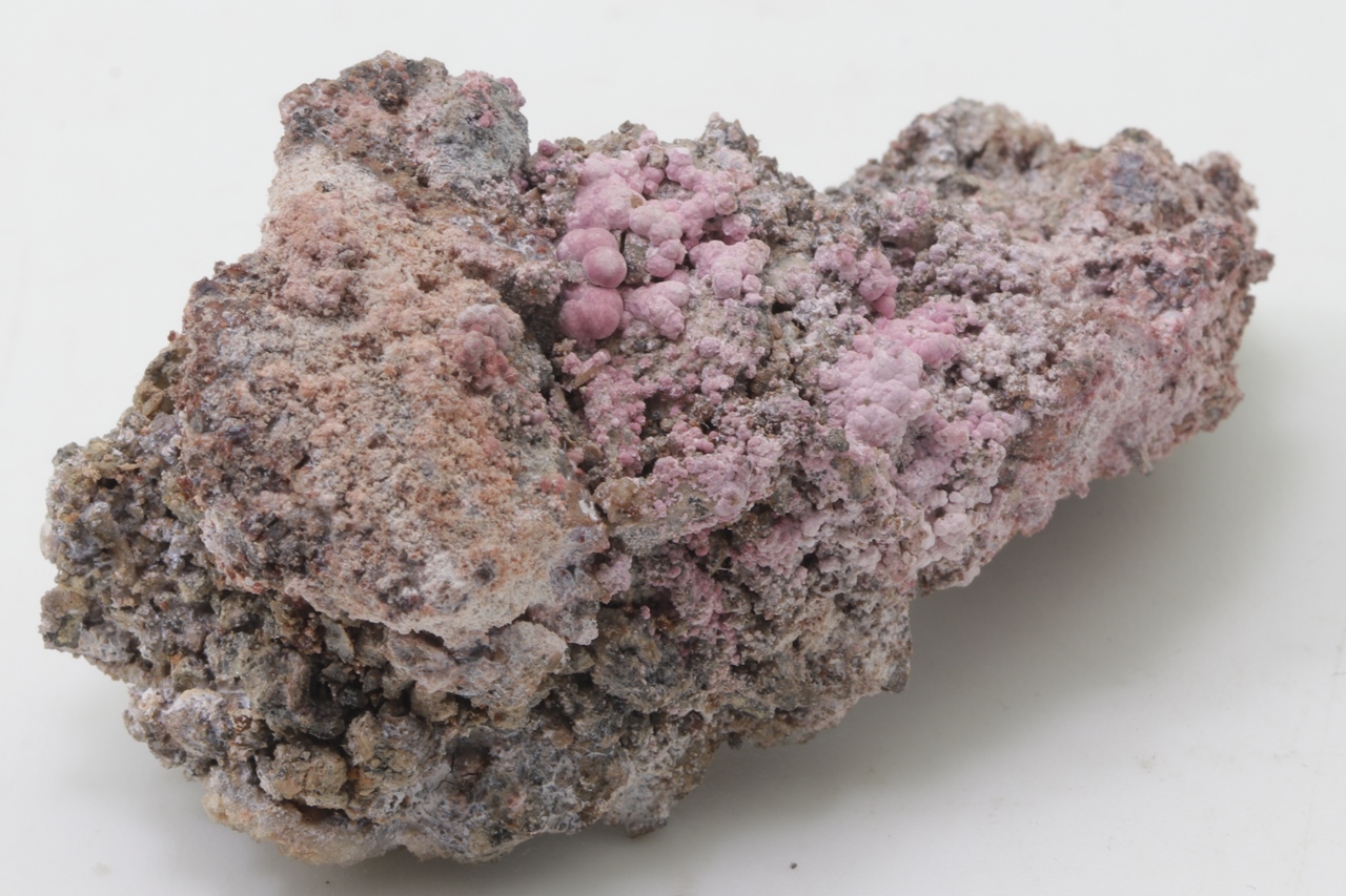 Kugelige Aggregate des rosafarbenen Zinkarsenats. Das Muster stammt aus dem 12. Stockwerk des Bergwerks Svornost, Ader Geschieber.