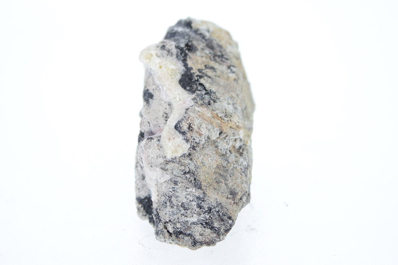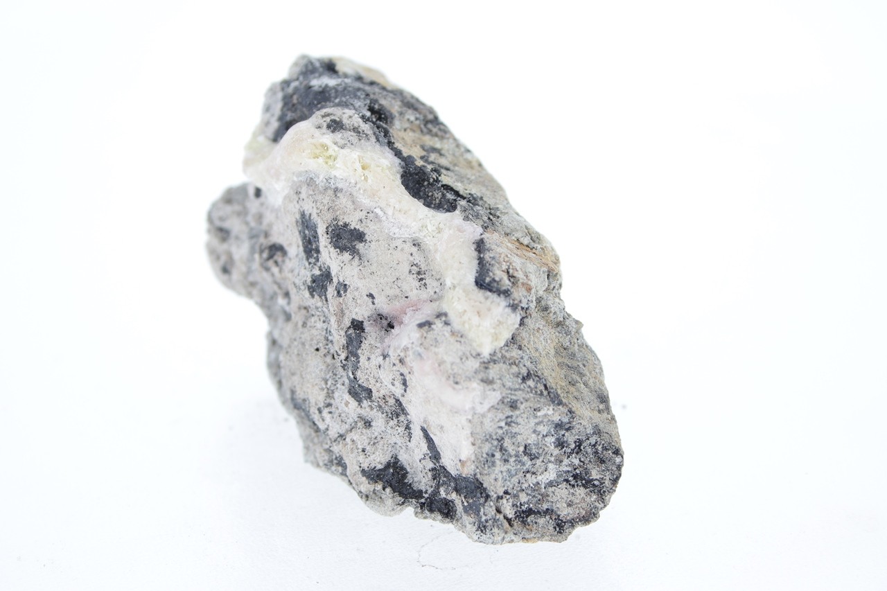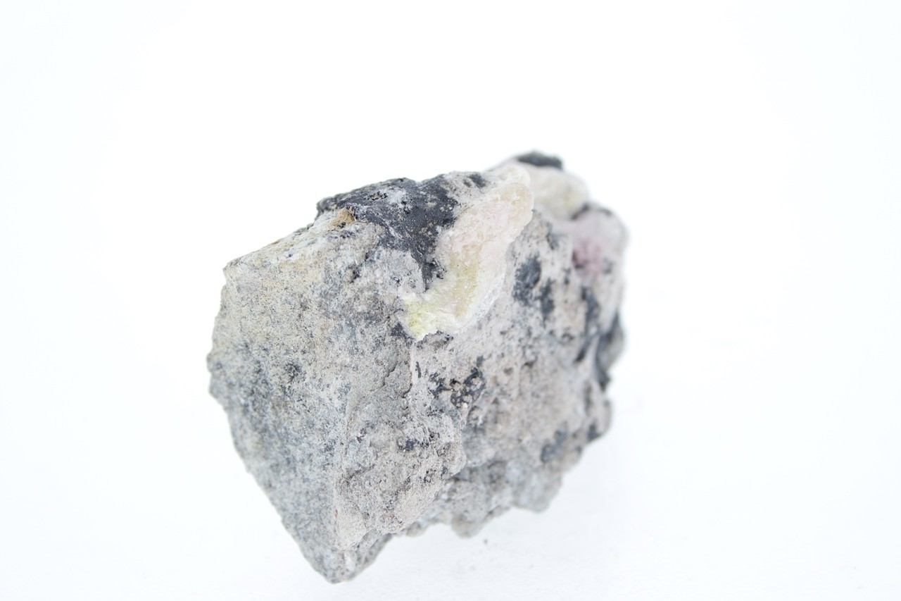 Probe mit reichen köttigit-Überzügen, die eine ungewöhnliche „Raupe“ bilden, mit einer Oberfläche, die stellenweise mit isolierten Kristallen sichtbar bedeckt ist. Weitere satte rosa, gut begrenzte Kristalle füllen eine Höhlung im rechten Teil der Probe.