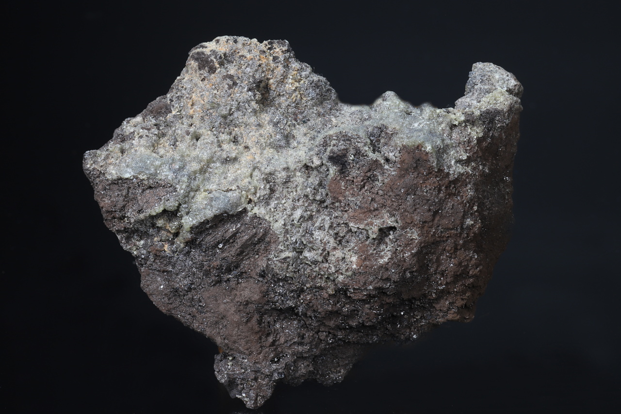 Gelbliche Krusten des seltenen organischen Minerals Kratochvílit vom Fundort Freital.