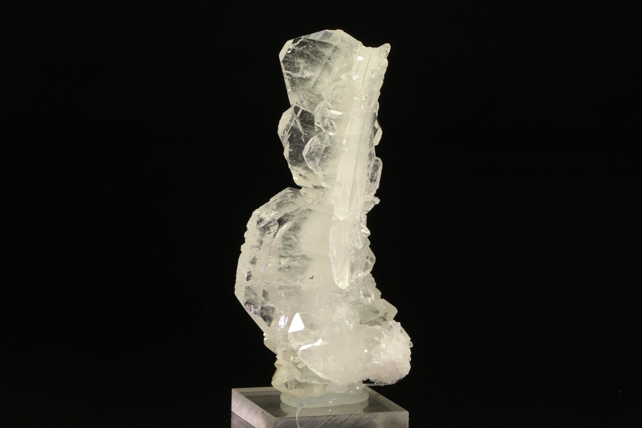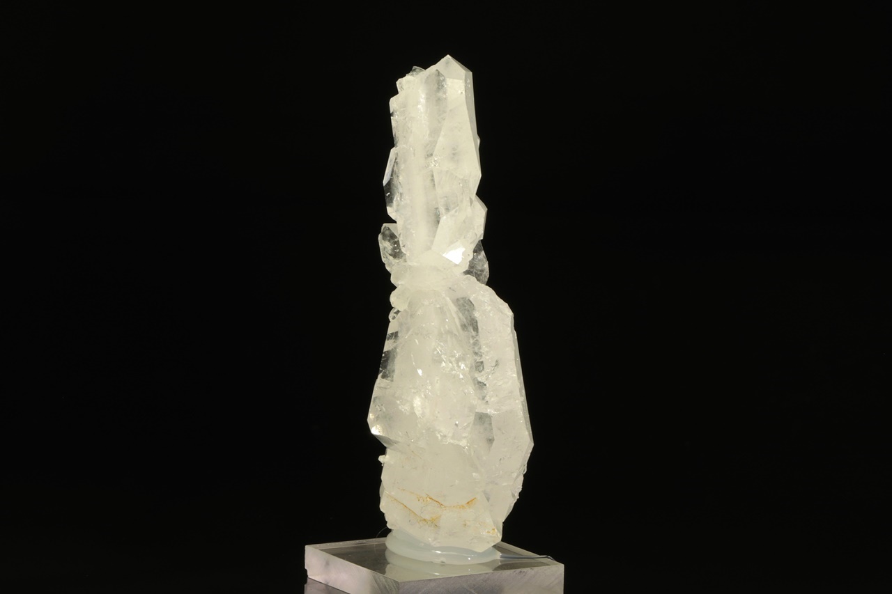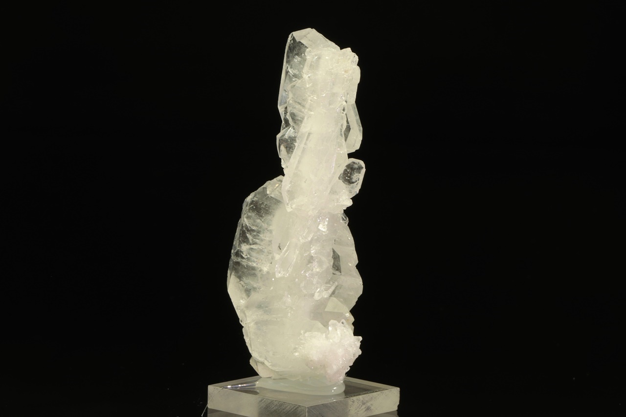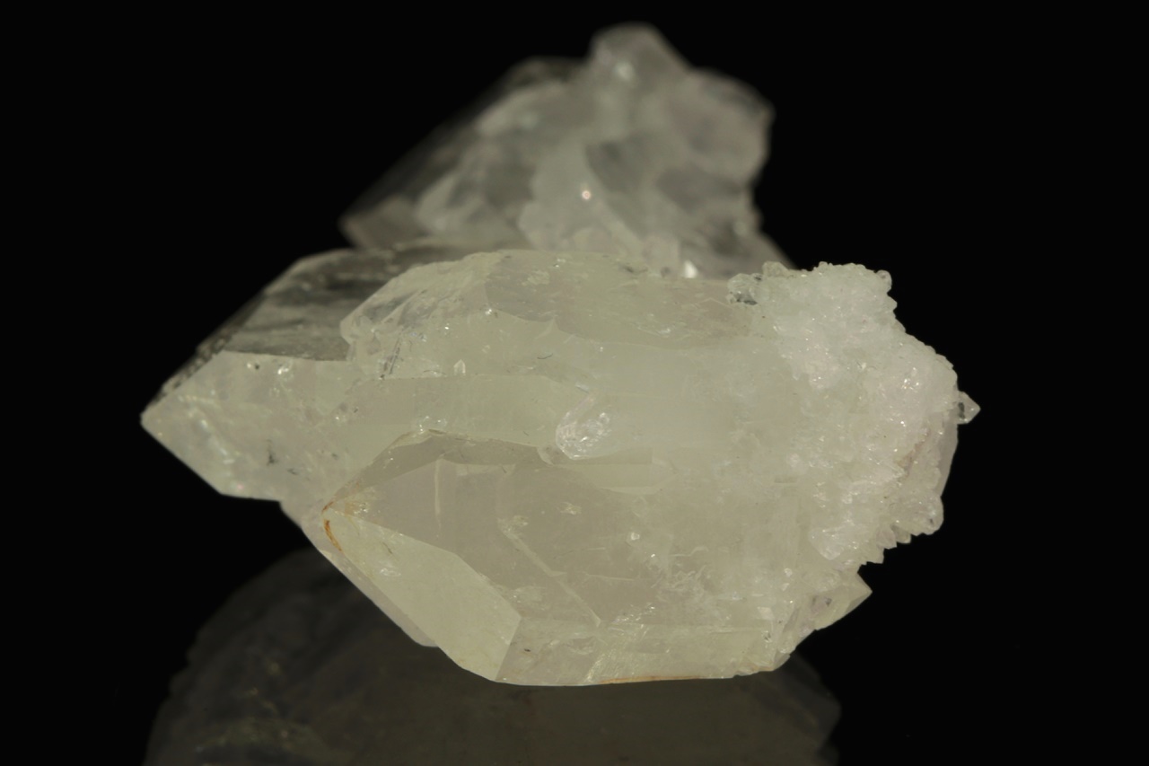 Srostlice čirých krystalů křemene s nezvyklým plochým vývojem označovaným jako „faden quartz“
