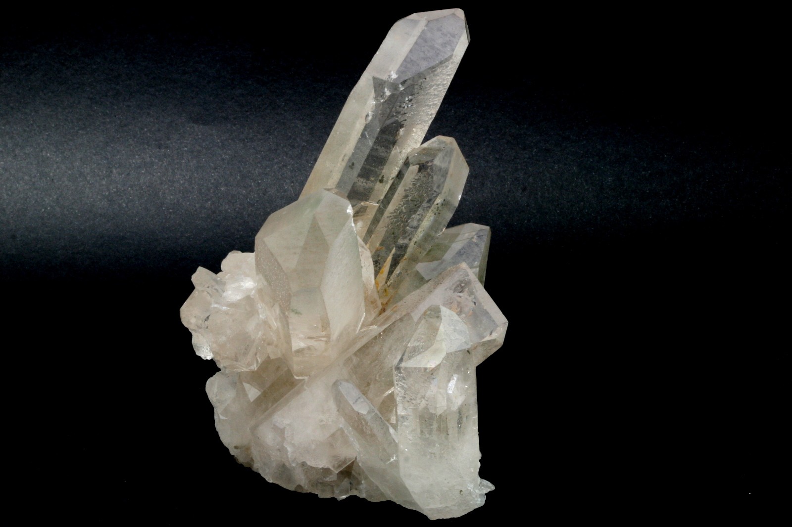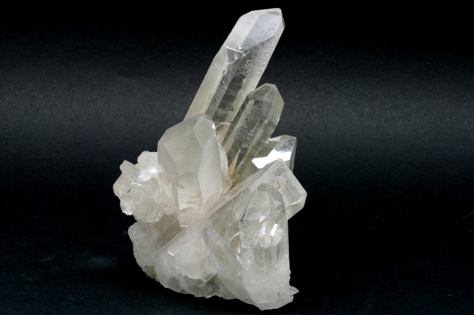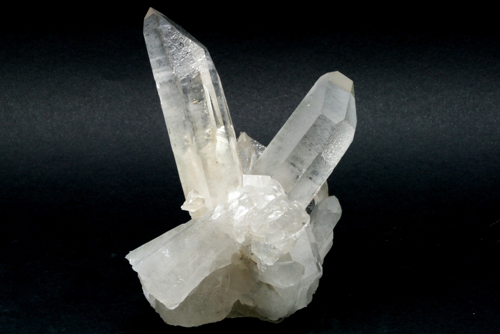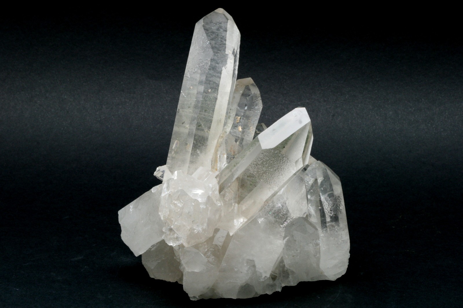 Schöne Probe eines frei gewachsenen Clusters aus klarem, perfekt begrenztem Bergkristall.