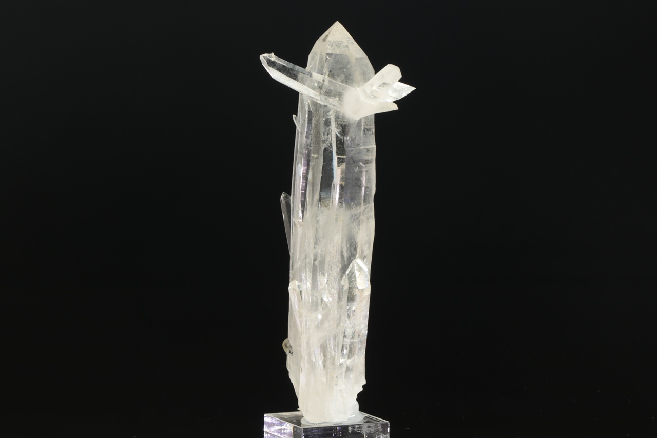 Eine Ansammlung mehrerer Kristalle aus klarem Quarz. Die Spitzen der Kristalle sind unbeschädigt.