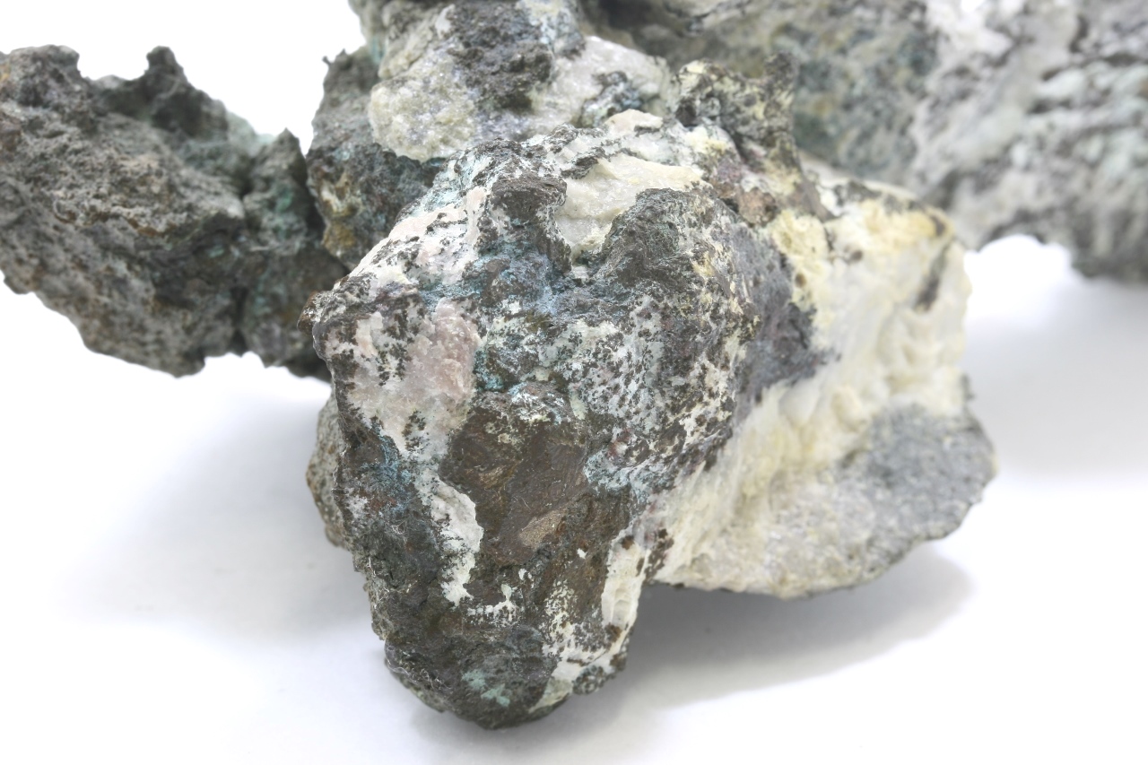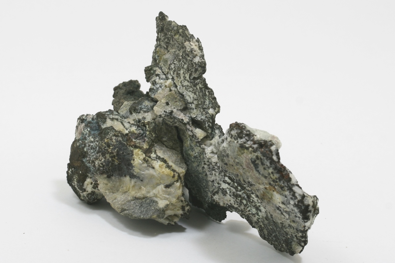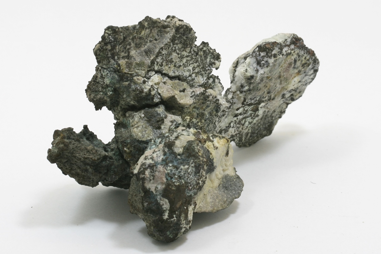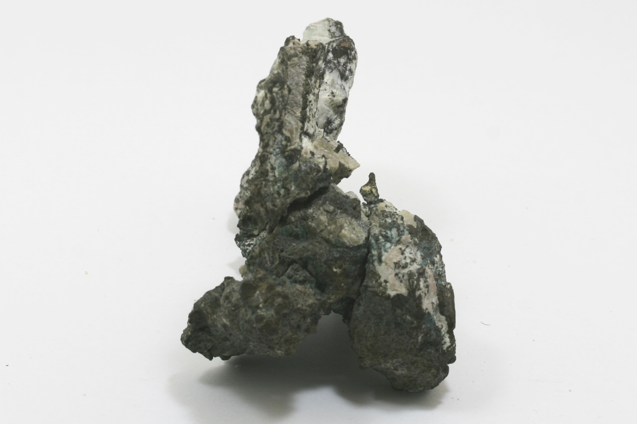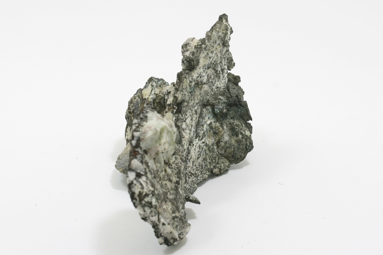 Naturbelassener, unbehandelter Stufe mit effektvollem drahtförmigem Blech mit Resten des Gesteins und auf der anderen Seite mit Kalcit.
