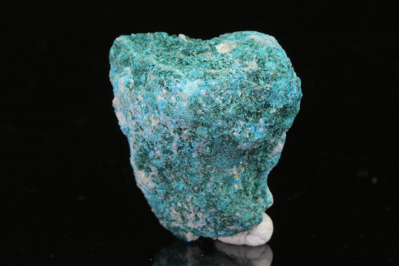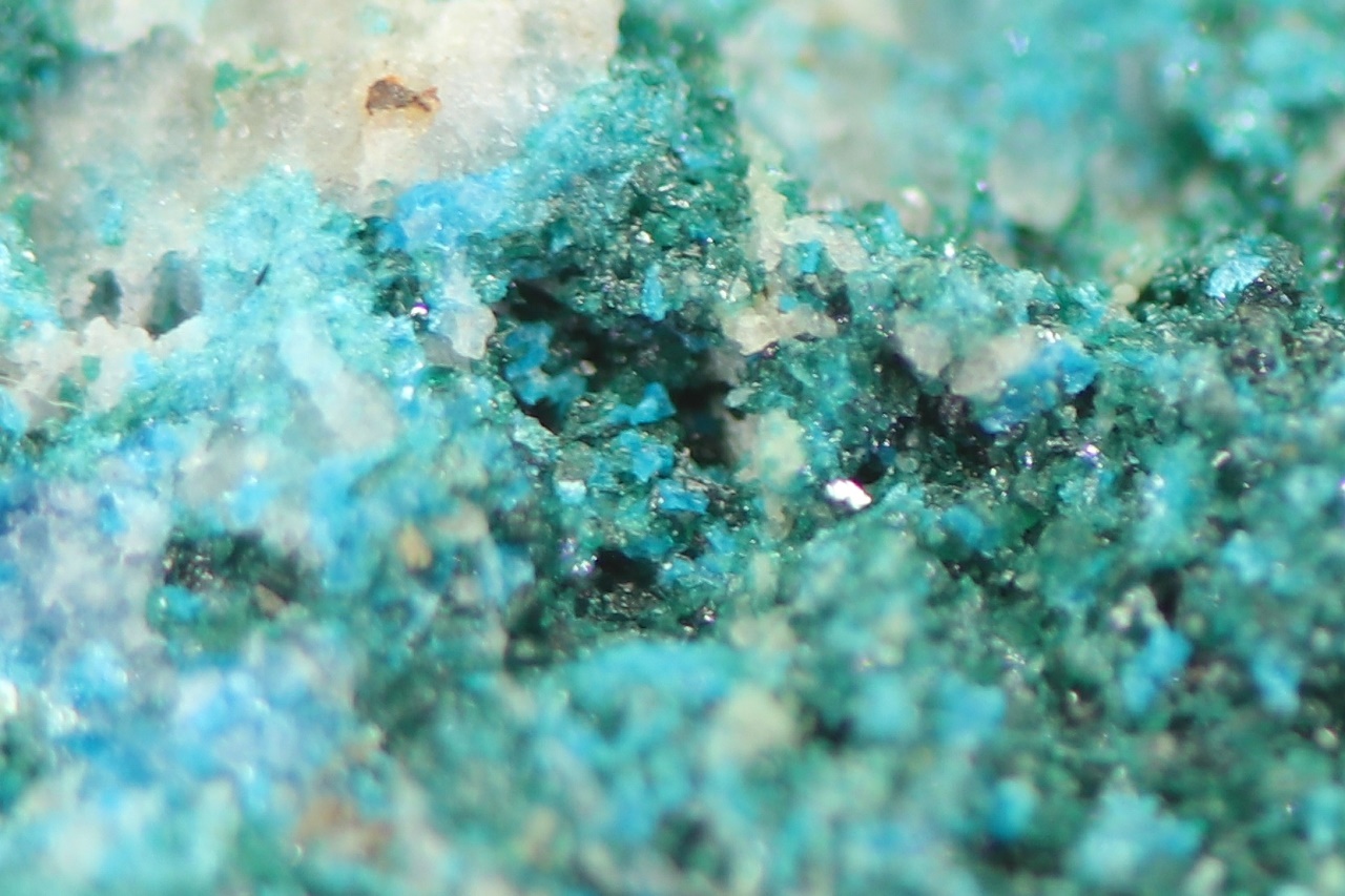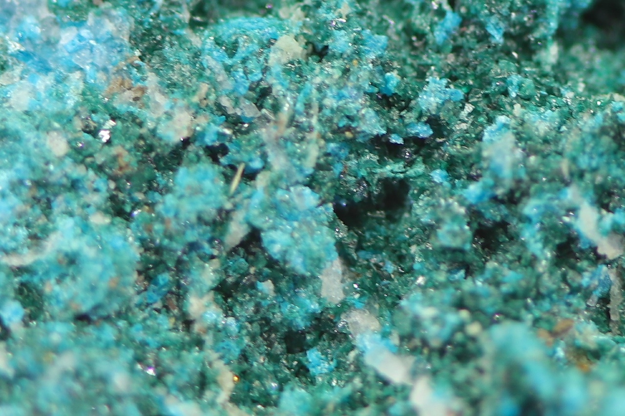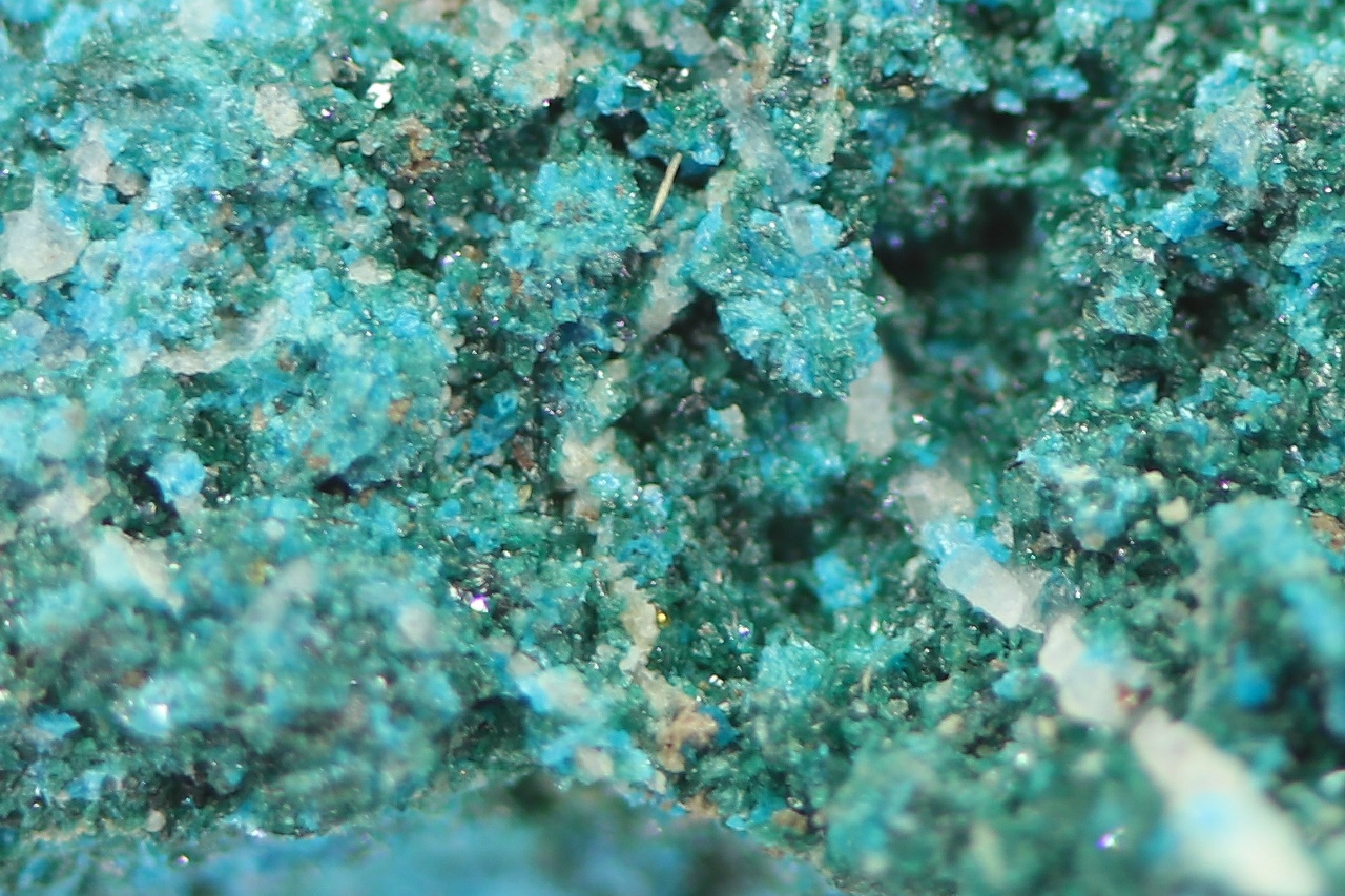 Reicher Fund von kleinen, grünen Kristallen des seltenen Kupferarsenats mit türkisblauem Lavendulán.
