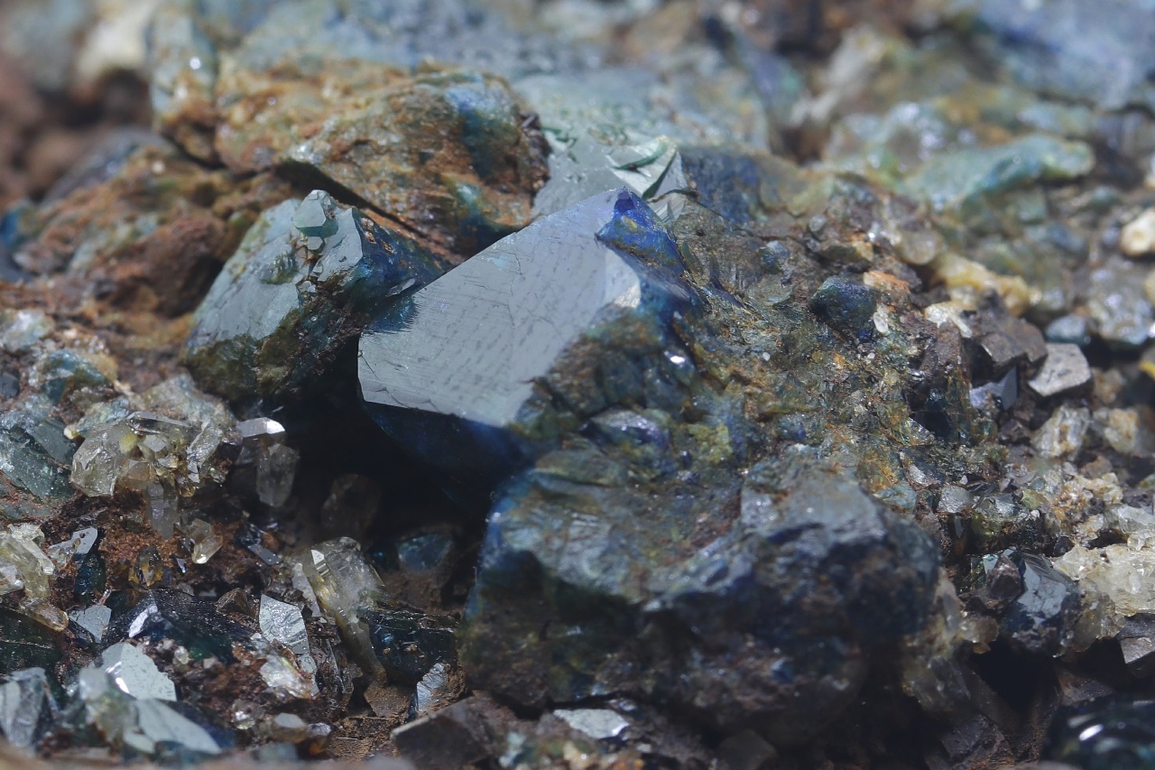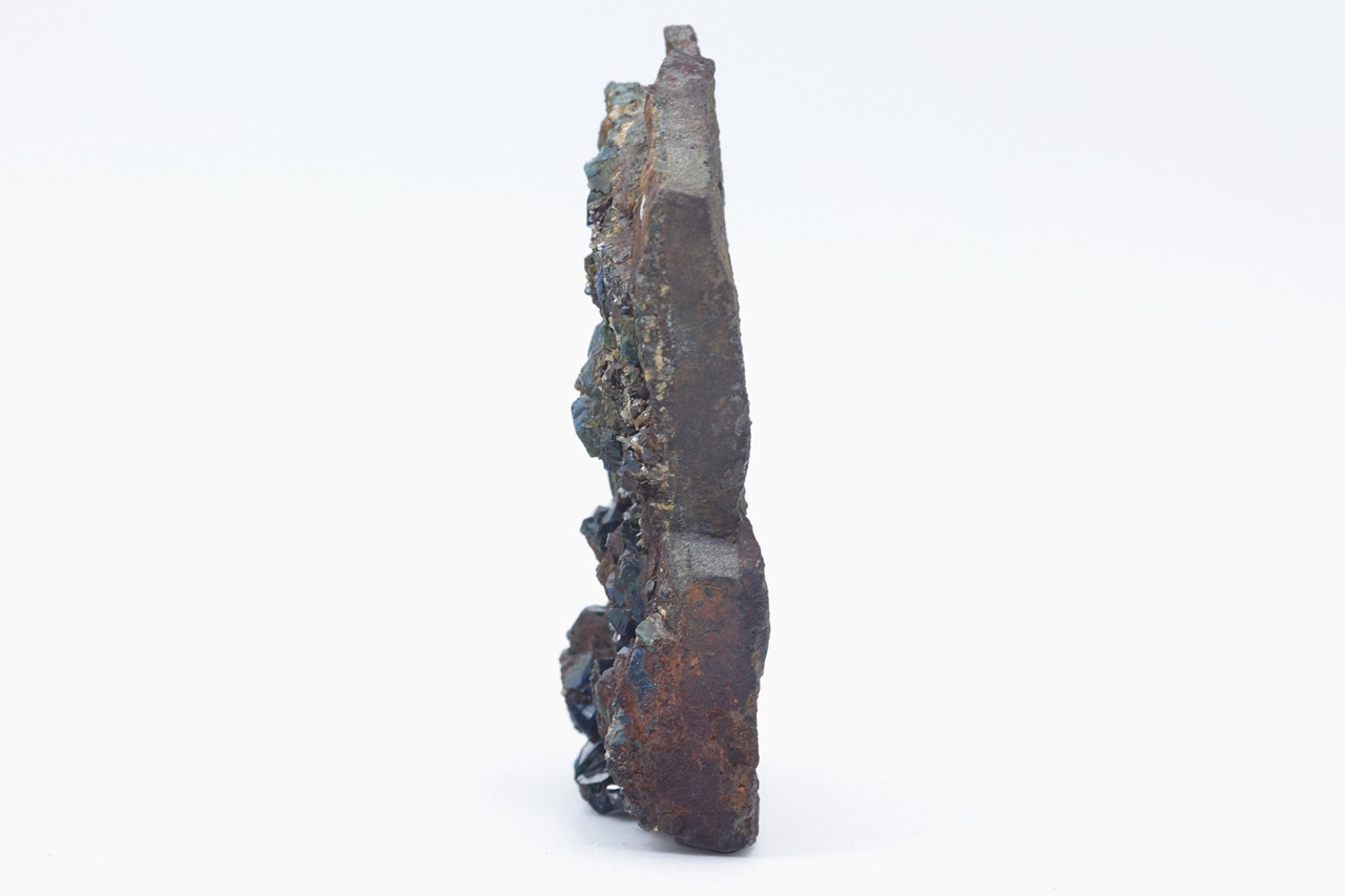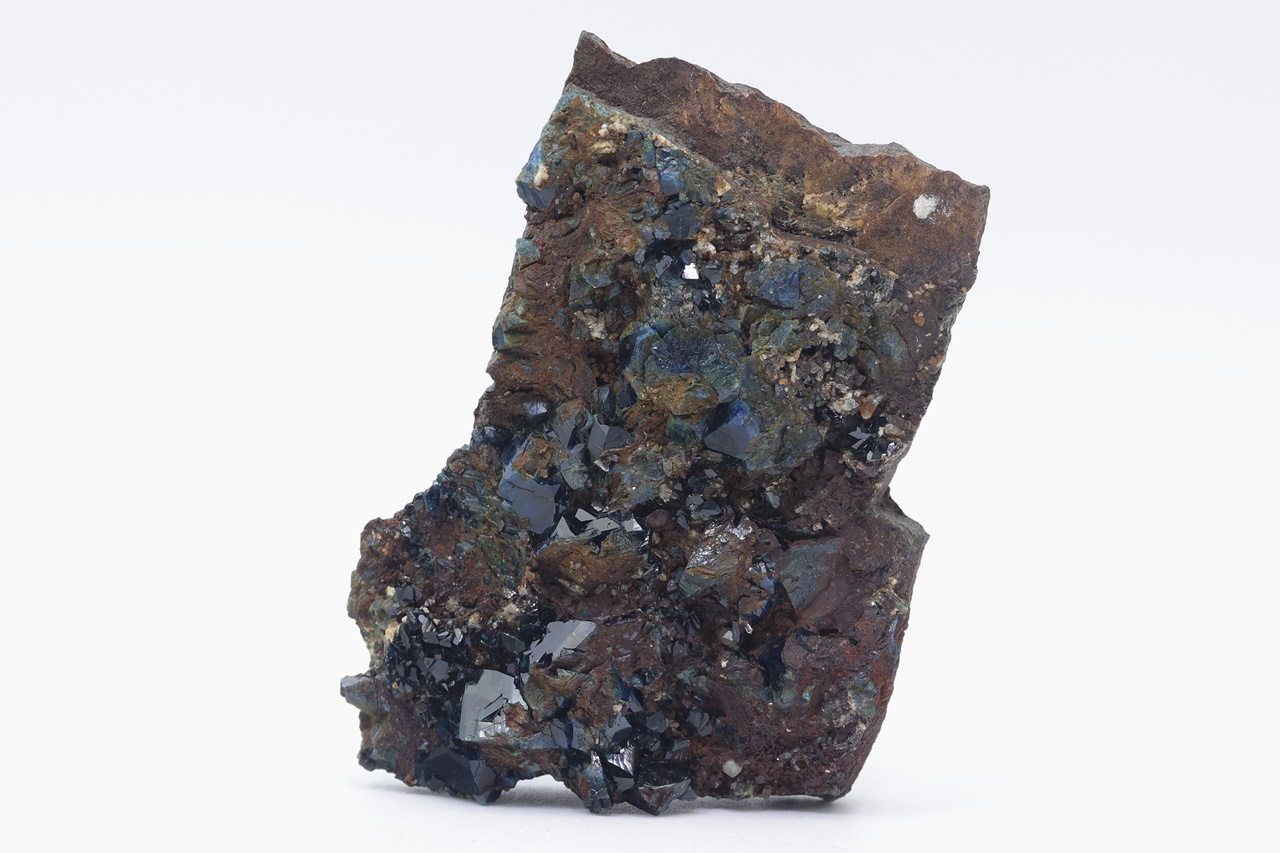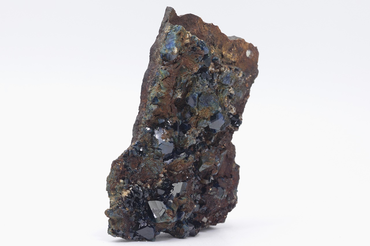 Druse wunderschöner, glänzender, dunkelblauer Kristalle von Magnesiumphosphat. Der größte Kristall ist 1,5 cm groß.