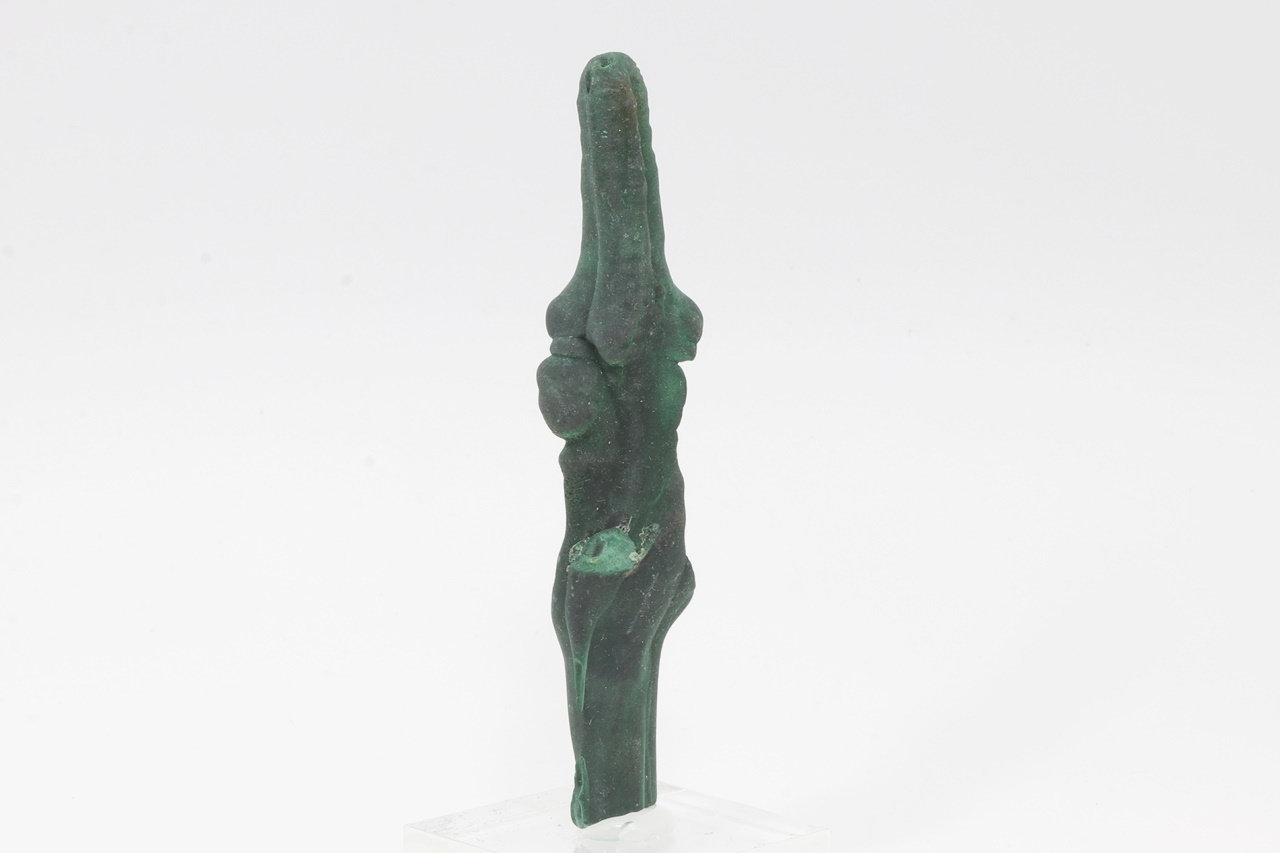Eine Probe von dunkelgrünem Malachit, in einer staktitischen Form, die einem Kaktus aus Kongo ähnelt.