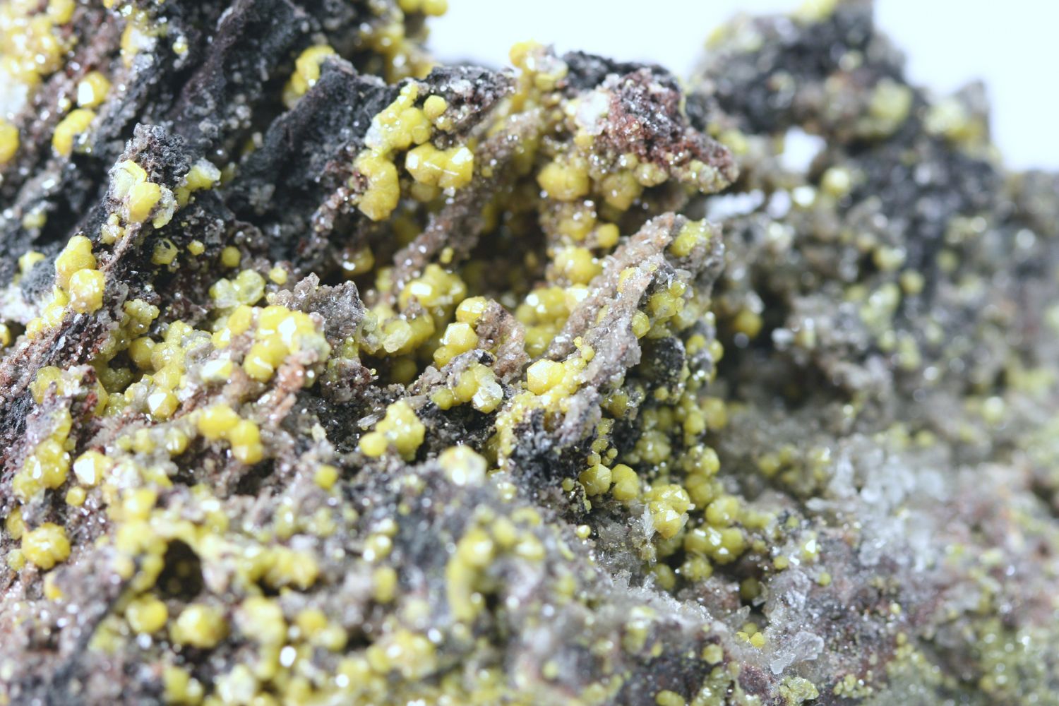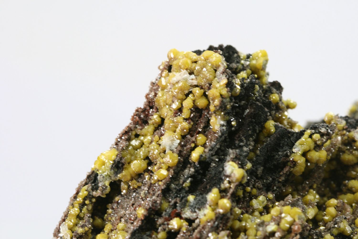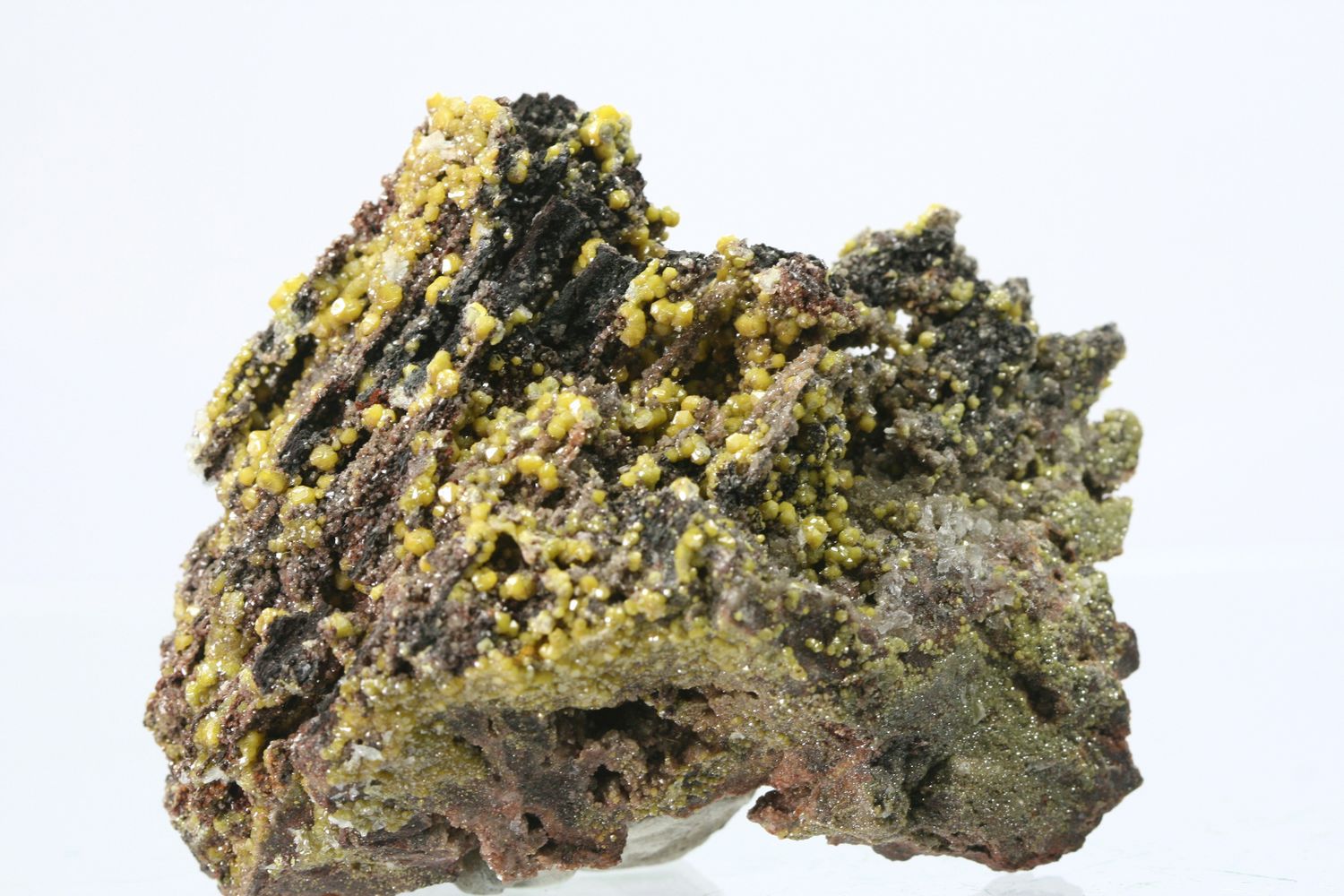 Reichhaltiges Exemplar von gelben Mimetitkristallen.