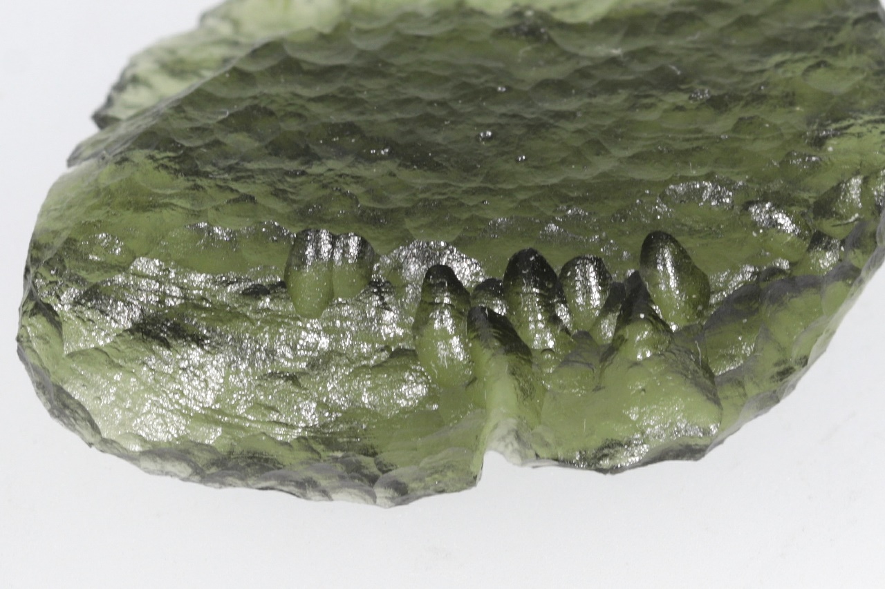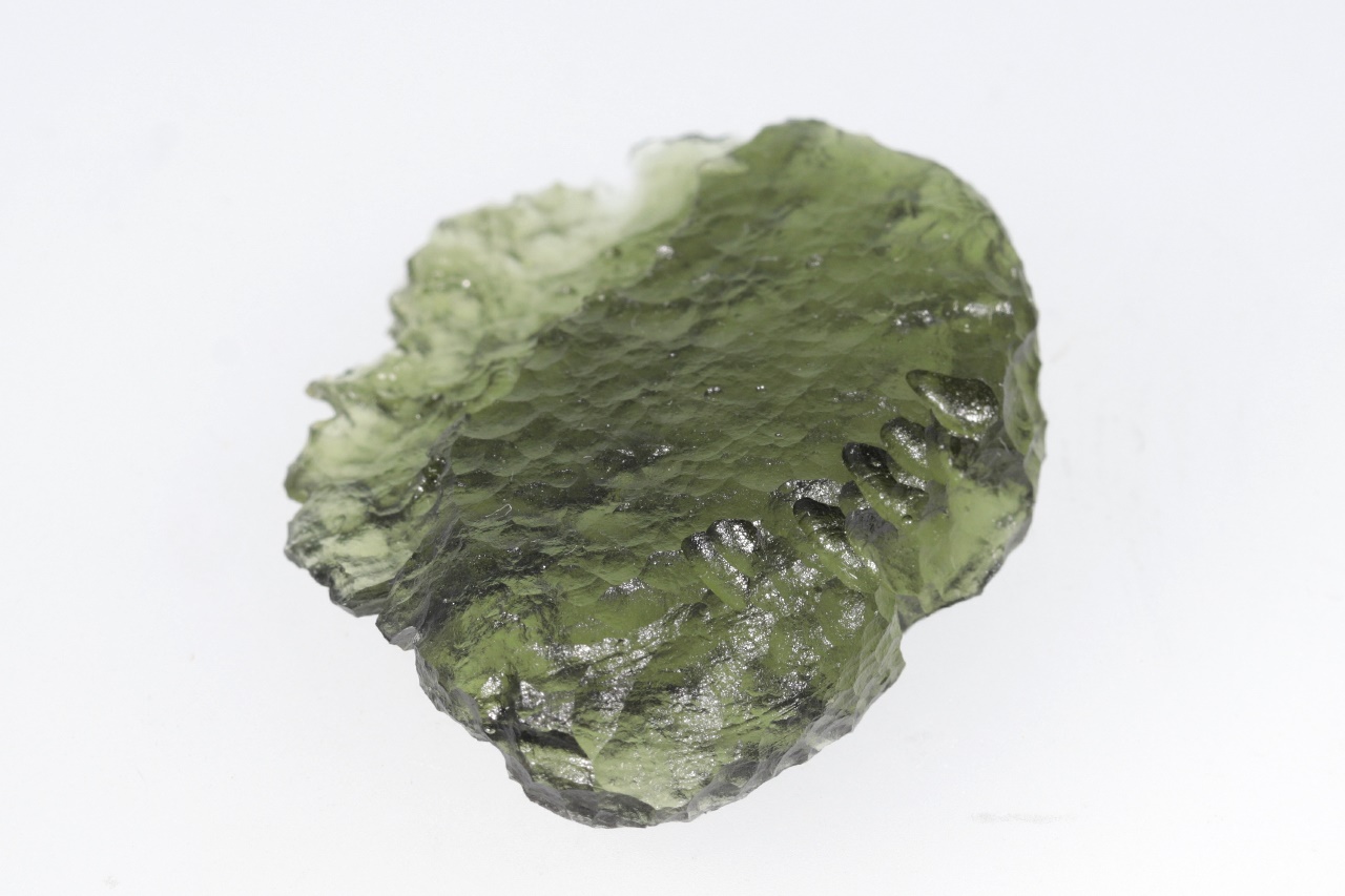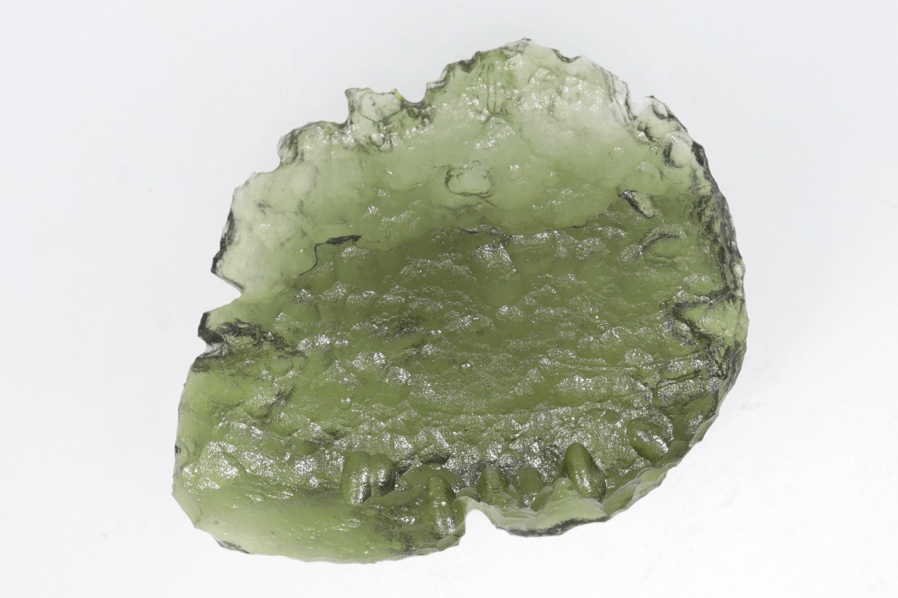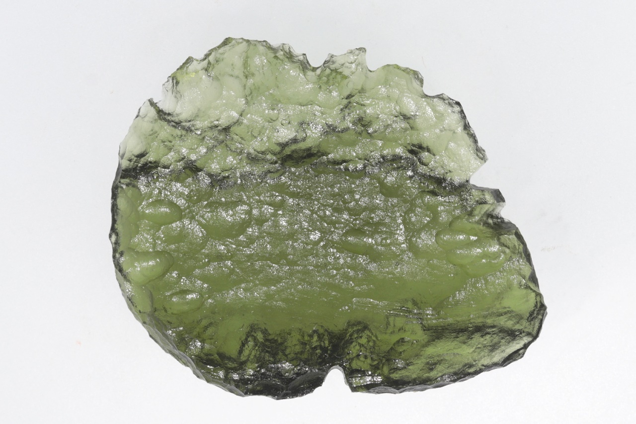 Unbeschädigter Moldavit mit interessanter pockennarbiger Skulptur.
