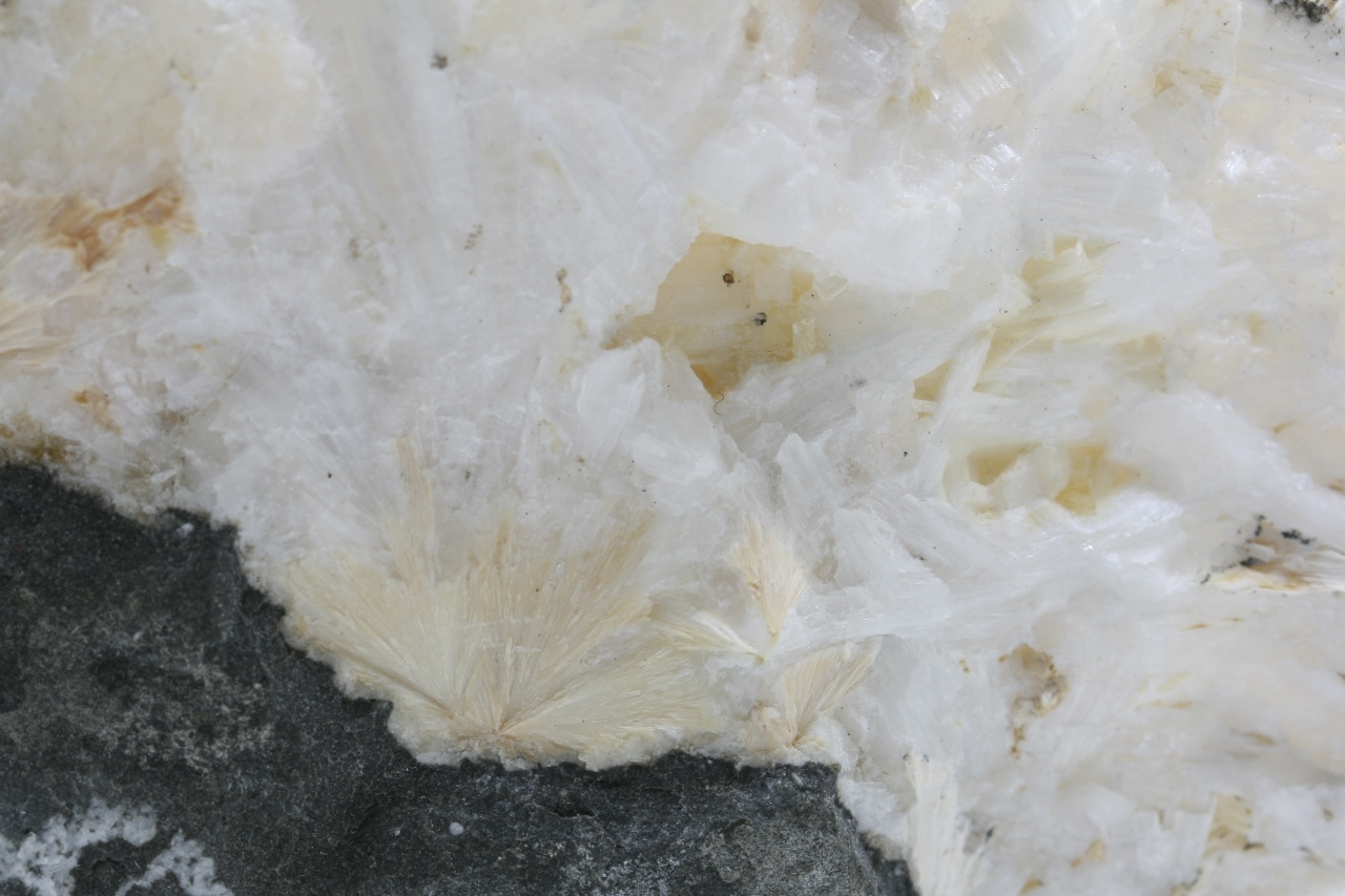 Helle beige radiale Aggregate mit weißem Natrolit.