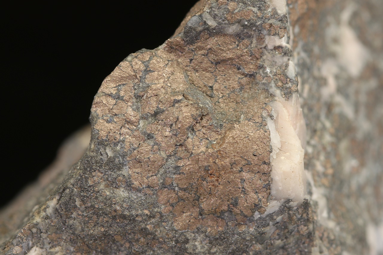 Vzorek je hořejší bronzové zbarvení s nikelínem, ve kterém jsou významné velká zrna masivního nikelínu.