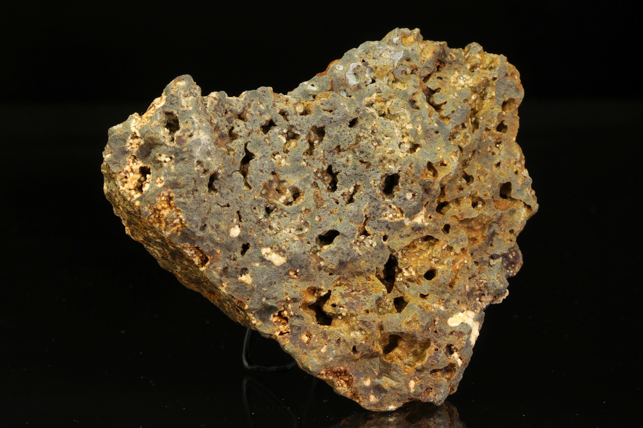 Sehr reichhaltige Probe von glänzenden gelben Kristallen des Paulingits bis zu 1 mm Größe, die in den Hohlräumen des Tuffs gewachsen sind.