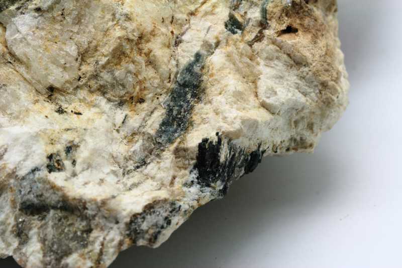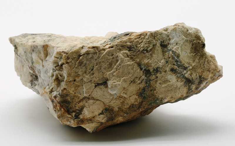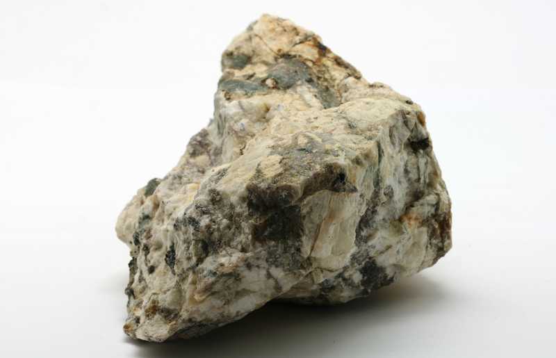 Klassisches Beispiel des Lithium-Alumosilikats Petalit aus dem Fundort Nová Ves. Große Probe von typisch spaltbarem grauweißem Petalit. Fast das gesamte Muster ist Petalit.