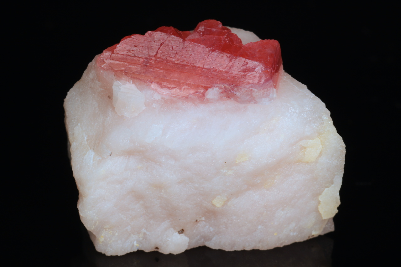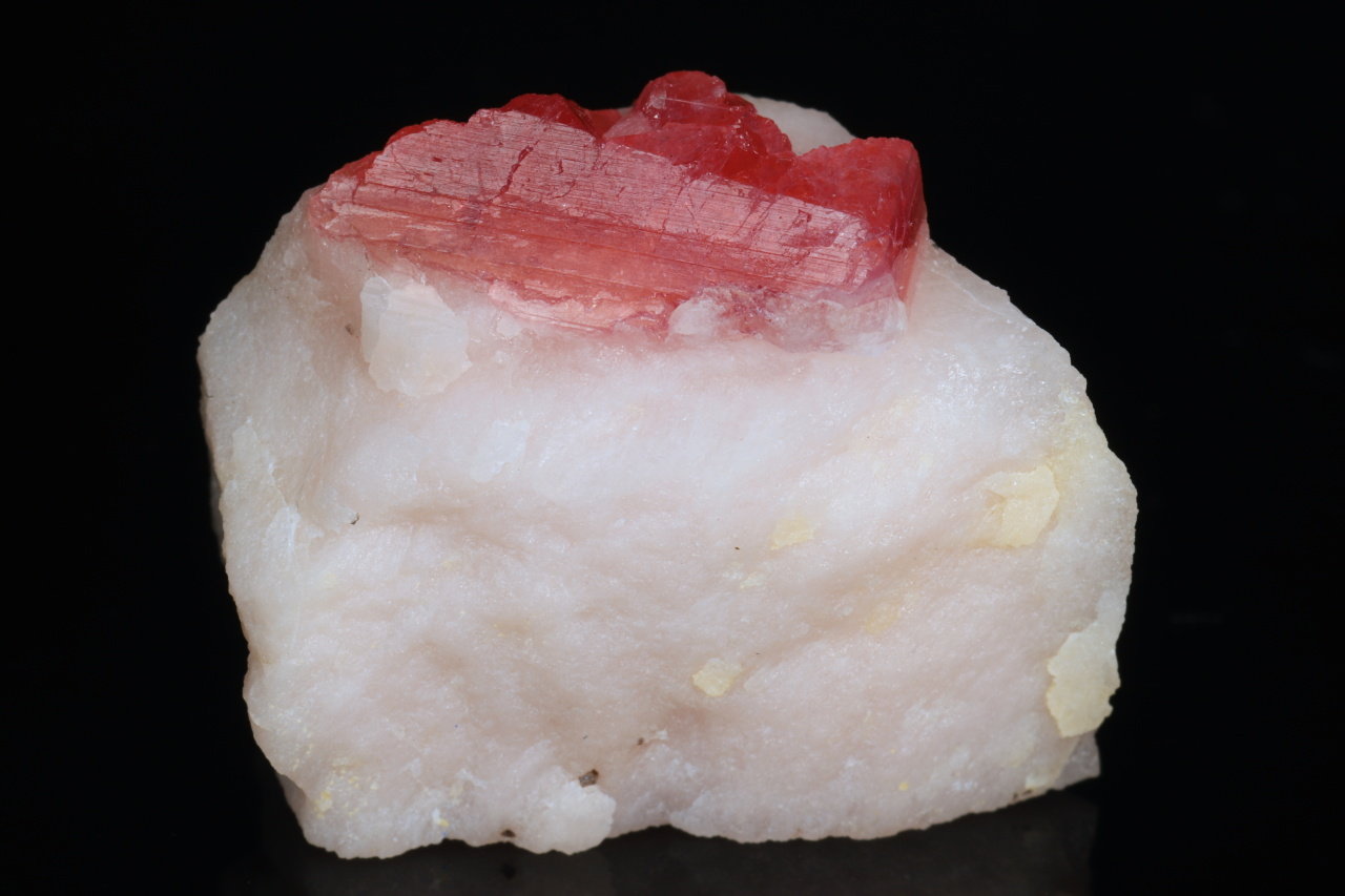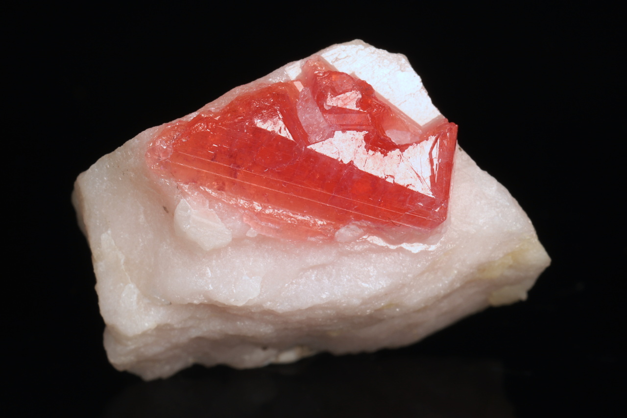 Kleinere Probe von wunderschönen intensiv roten Kristallen des extrem seltenen Pezzottait. Dieses Mineral hat nur wenige Fundorte weltweit und wurde im Jahr 2003 nach dem Mineralogen Federico Pezzotta benannt, der sich lange auf Madagaskar aufgehalten hat. Es handelt sich um ein Mineral aus der Gruppe des Berylls, das trigonal (im Gegensatz zum hexagonalen Beryll) ist und Lithium und Cäsium enthält. Sehr schöne Probe von der madagassischen Lokalität.