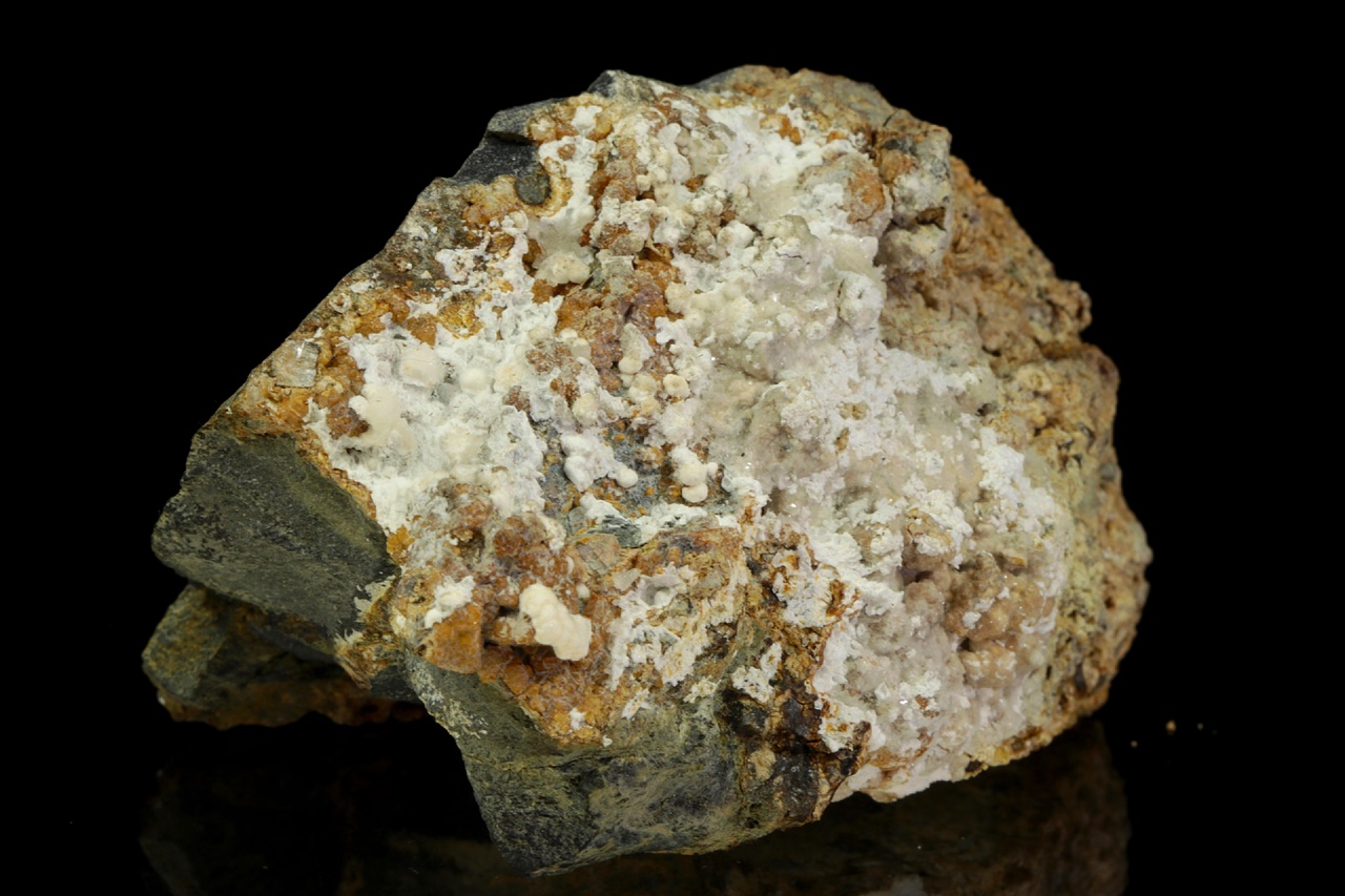 Blassfarbene, perlmuttglänzende Kristalle von Pharmakolith mit weißem Pikropharmakolith.