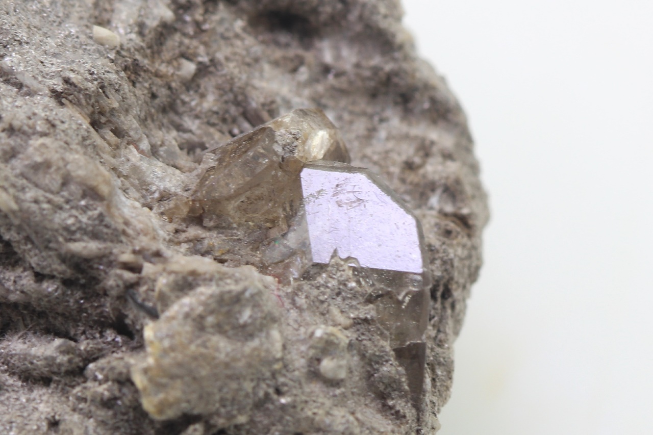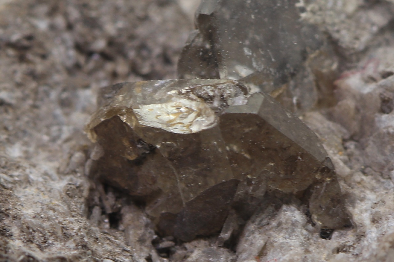 Durchsichtige, sehr glänzende Kristalle von Phenakit, leicht in Braun gefärbt. Der größte Kristall ist 12 mm groß.