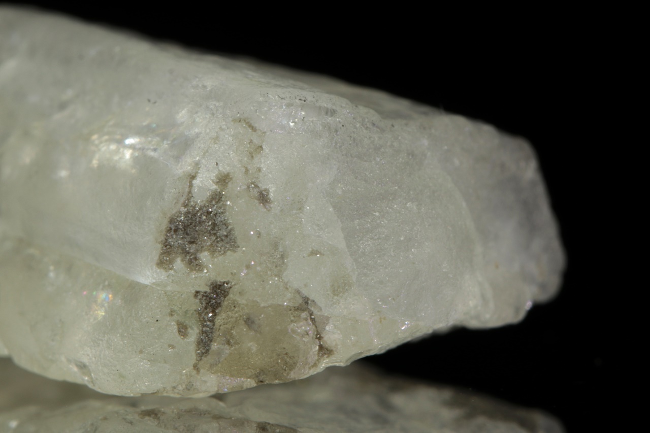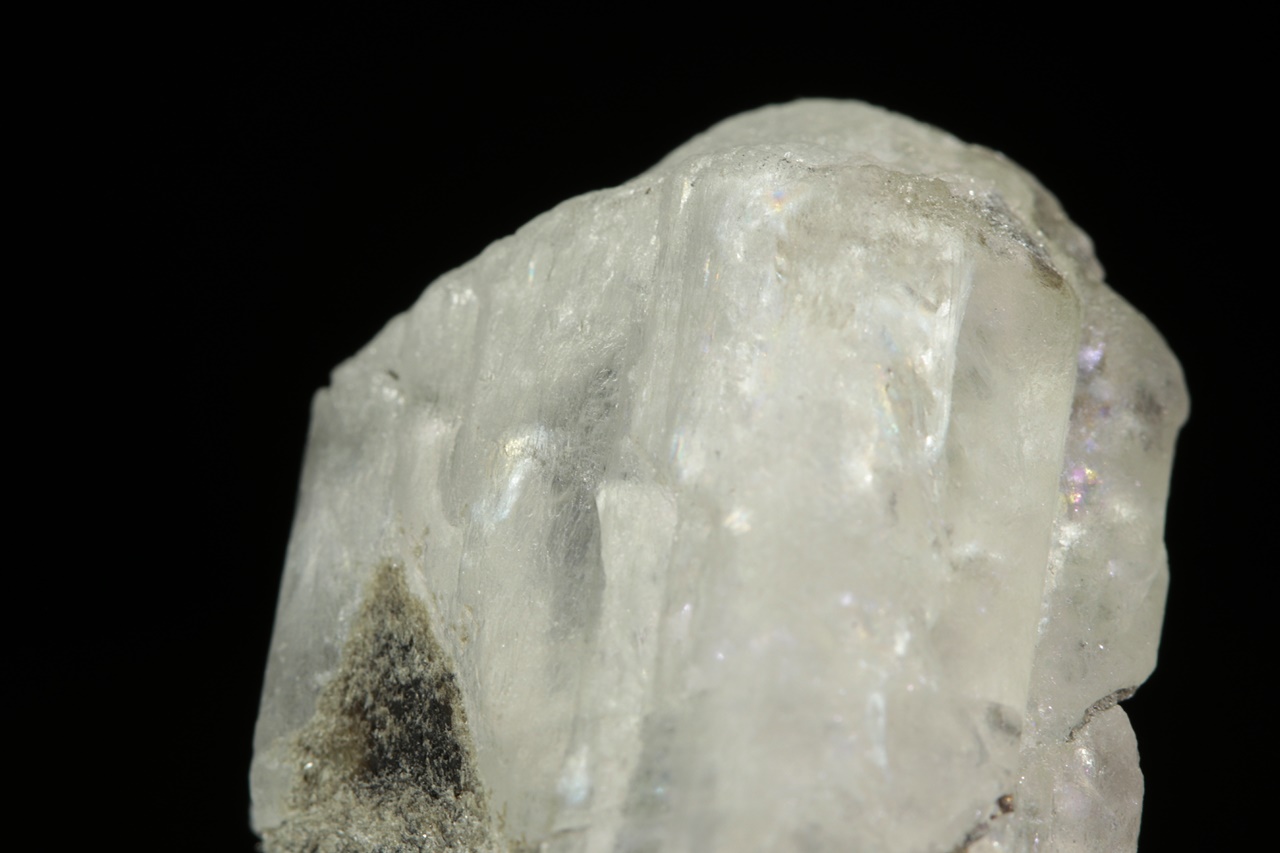 Klarer, teilweise durchsichtiger Fenakit-Kristall von der Typlokalität. Der Kristall war natürlich gespalten und von der umgebenden Matrix gefüllt.