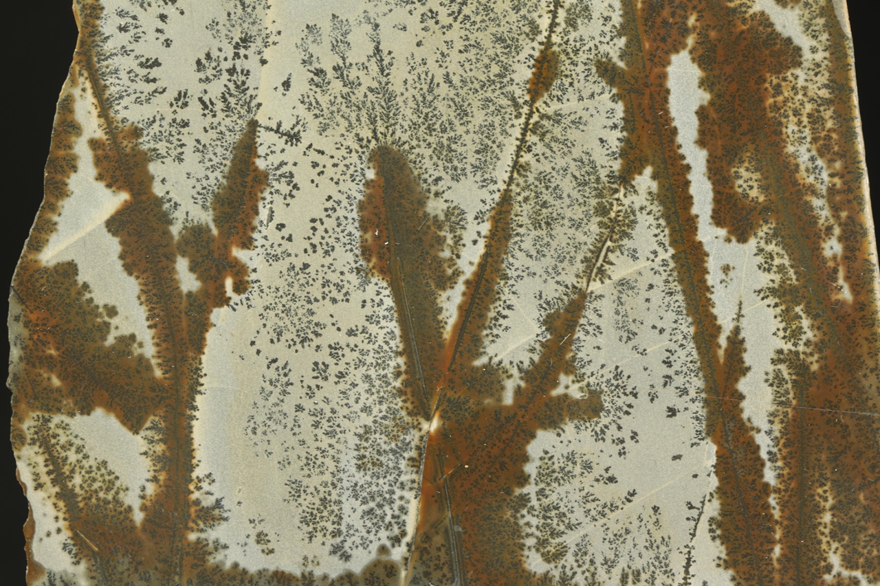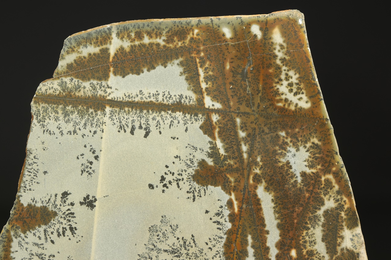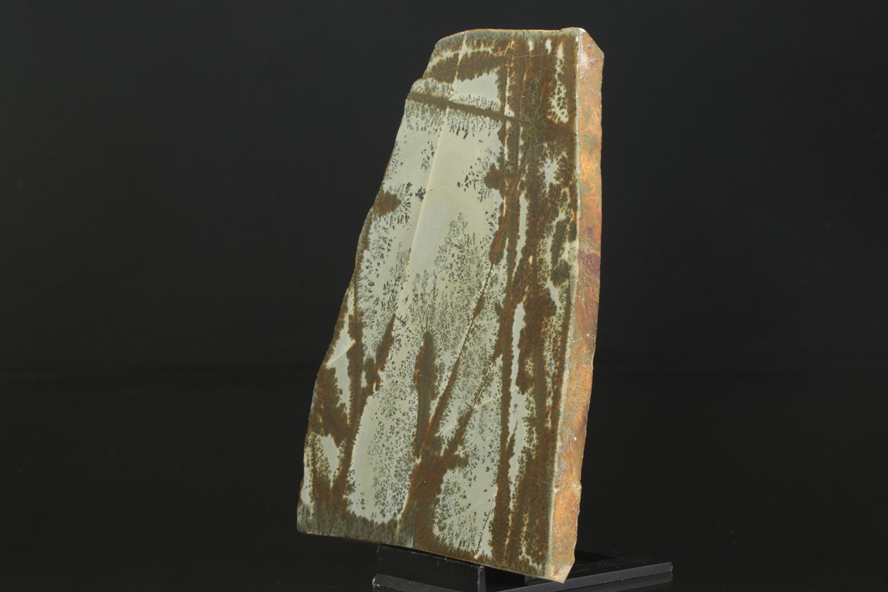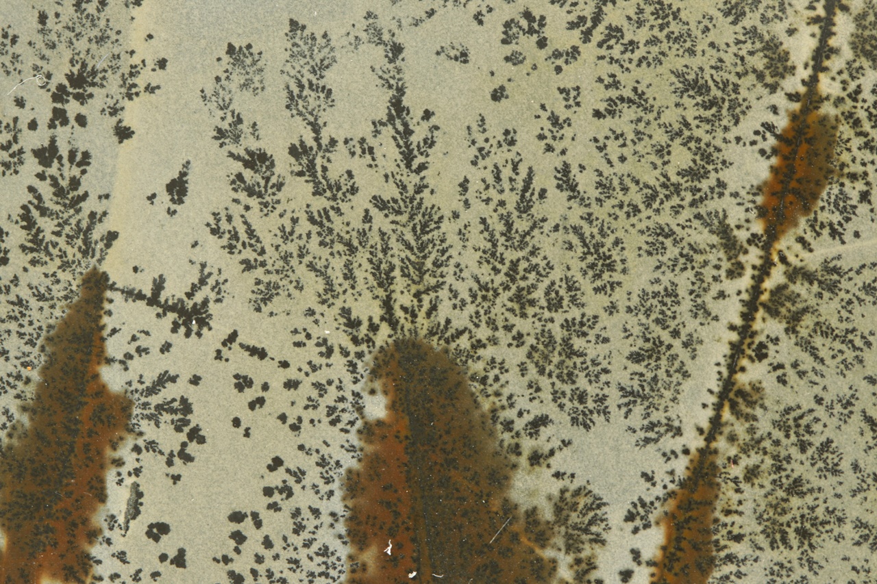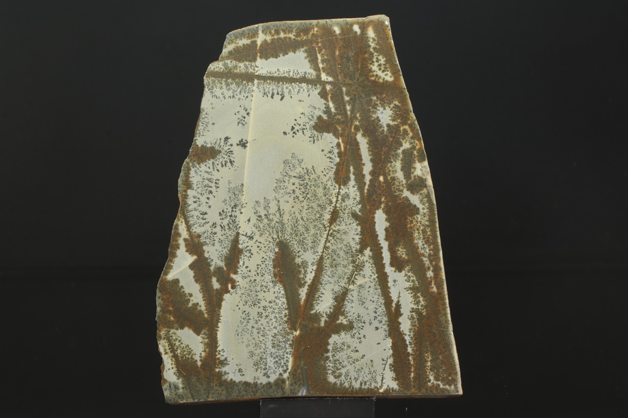 Polierter Porcelanite-Probe mit dendritischer Zeichnung.