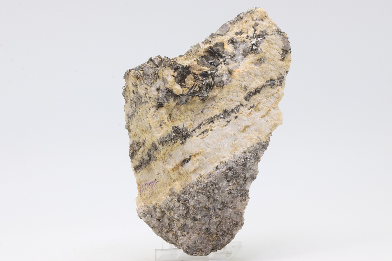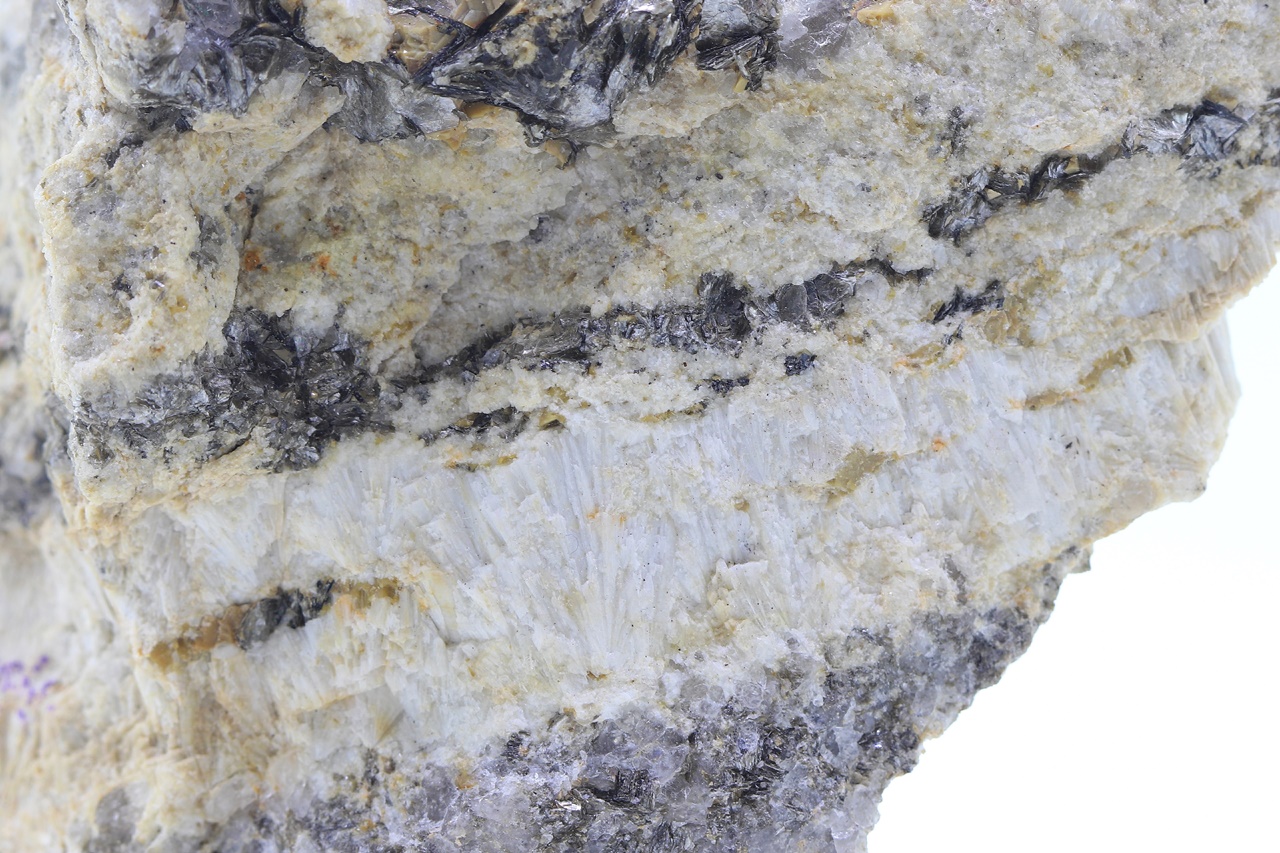 Zwei Zentimeter dicke Ader von säulenförmigen Kristallen des Topas – Sorte Pyknit mit Kristallen von Cinwaldit .