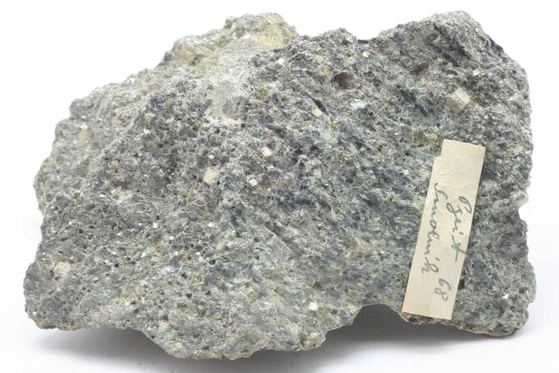 Probe von Pyrit aus dem Fundort Smolník, SR. Schönes Exemplar von Pyritwürfeln mit einer Kantenlänge von bis zu 4 mm.