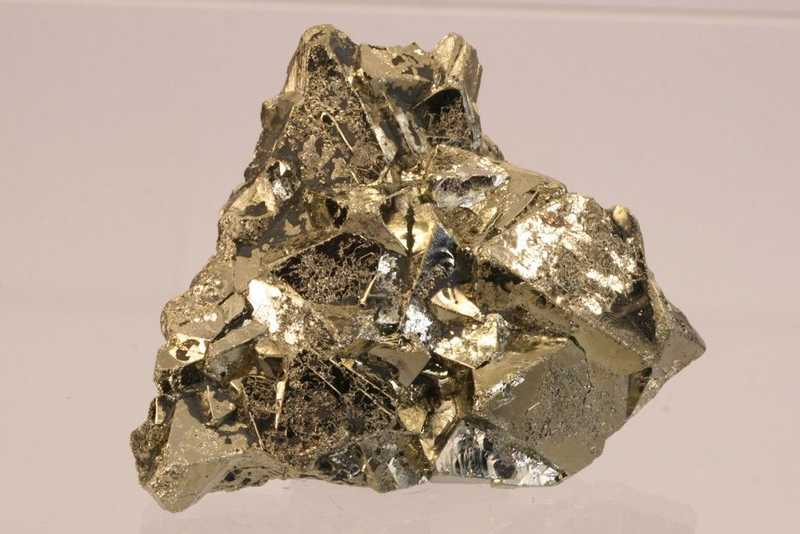 Wunderschönes Beispiel für Pyritoctaeder mit kleinen Ätzungen aus dem peruanischen Huanzala. Im Video können Sie es [hier](https://www.facebook.com/206557902748917/videos/1175886862482678/) ansehen. Glänzende Pyritkristalle, von denen der größte 3 cm hat.