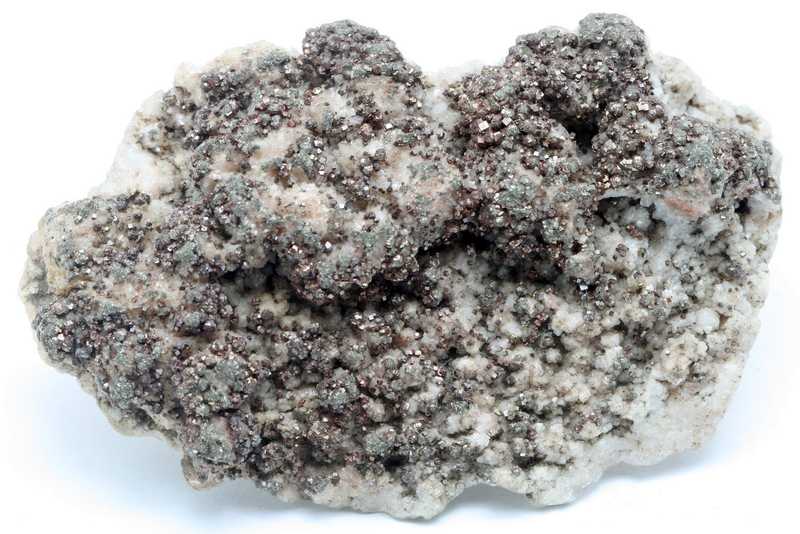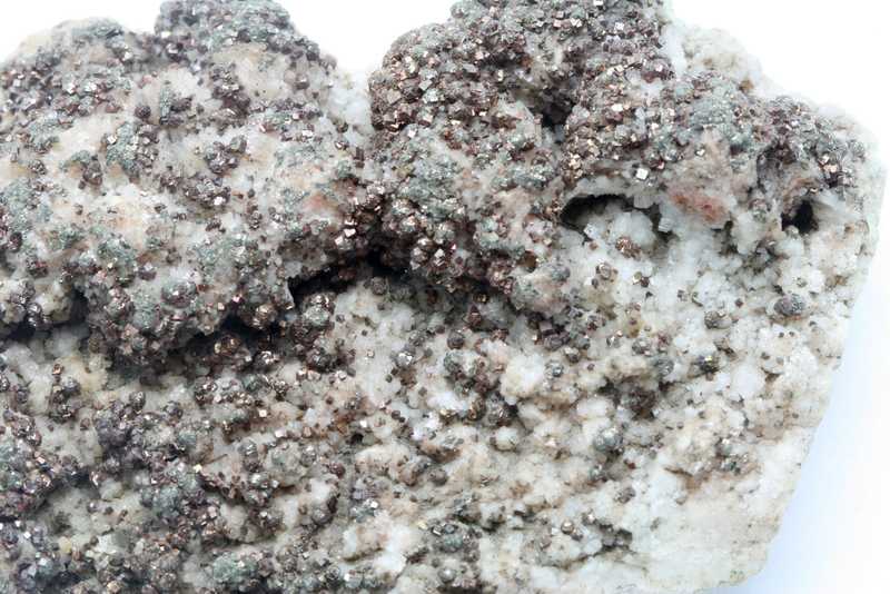 Sehr ästhetisches Muster von Pyrit mit Dolomit aus Příbram, Tschechische Republik. Druse von Aggregaten aus weißem Dolomit, bewachsen mit Pyrit.