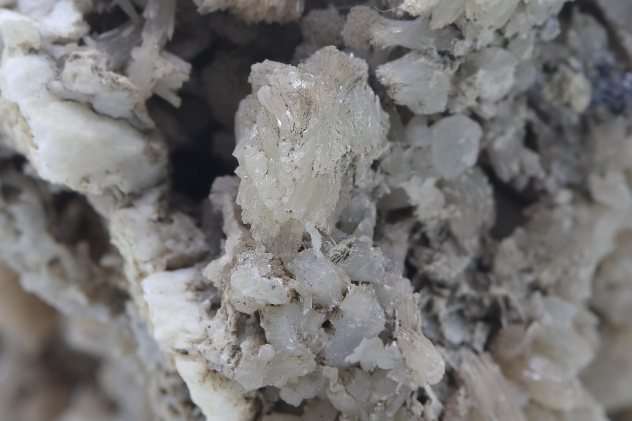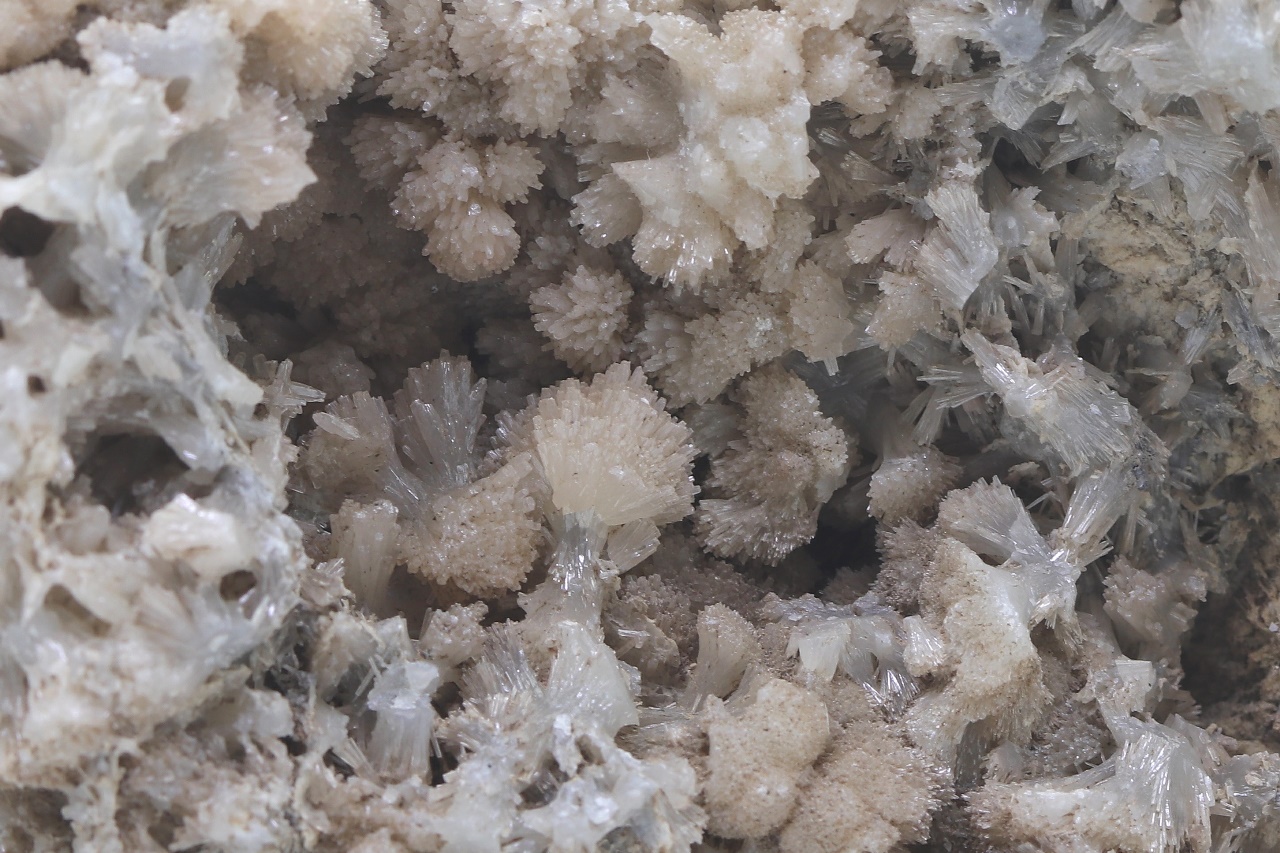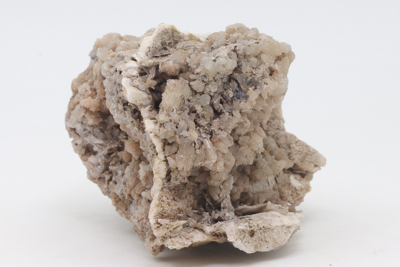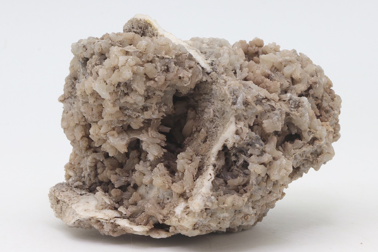 Zweispanniges Muster üppig überzogen mit Büscheln und Horsten von hellgrauem Hemimorphit aus einer historischen deutschen Lokalität.