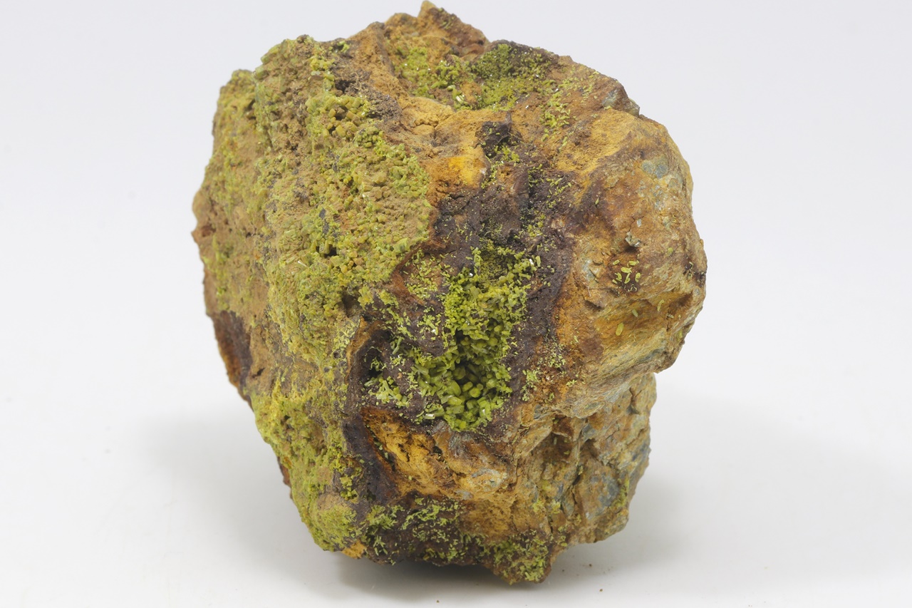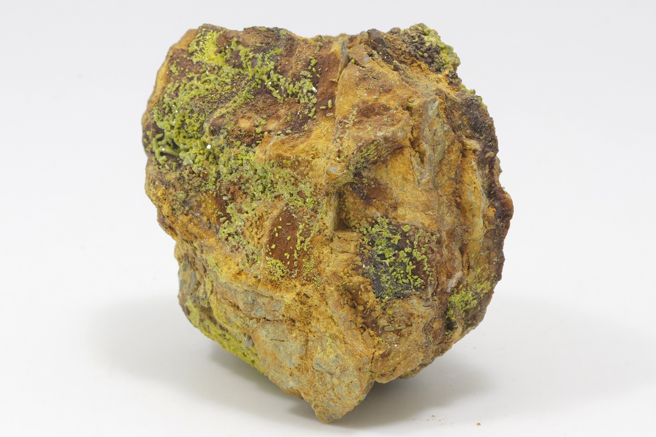 Probe reich bewachsen mit grünen säulenförmigen Pyromorphit-Kristallen bis zu 2 mm Größe .